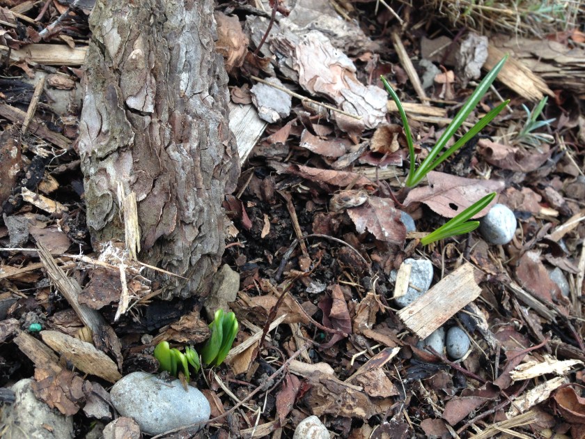 Since we moved into this house pretty much at the end of the growing season last year, I have been looking forward to spring here. We had a big hailstorm just before we moved and the previous owners cut all the damaged plants back to the ground. I was able to identify a couple of them by smell, but I have been looking forward to spring when everything puts its flashy bits on display, making them easier to identify. For example, I figured we had a few willows by the shape of the remaining leaves, but they are producing little catkins, so Pussy Willows they are! While I was digging grass out of the beds and getting to know my soil (there are lots of worms and ladybugs, yay) I discovered the first leaves of what looks like bellflowers of some sort, as well as daffodils, scilla, daisies, bee balm, and a marker for dwarf phlox (we’ll see if it shows up). I did notice that none of these plants are on the “favourite salad bar items of deer” menu. That bodes of things to come, and I’ll try to carry on that tradition. The little shrubs cut to the ground are still a mystery – gardening is a sport requiring patience. It is intoxicating to sit in the sunshine and root around amongst the plants though. For me, there is nothing like the feeling of spring! I’m itching to hit the garden centres, but I know it is too early unless I want to spend the next month carrying pots in and out of the house. I did notice that my sweet peas have germinated though, so we are in business there!