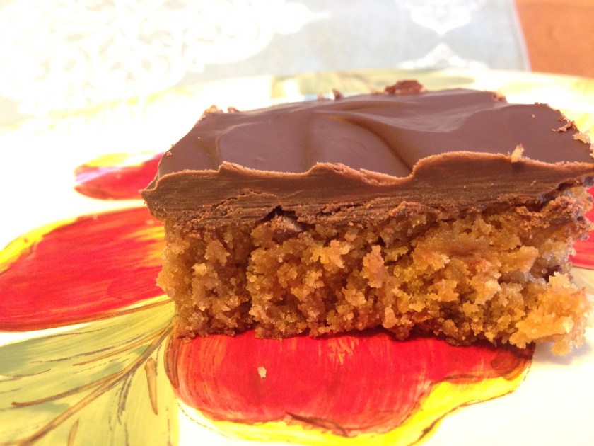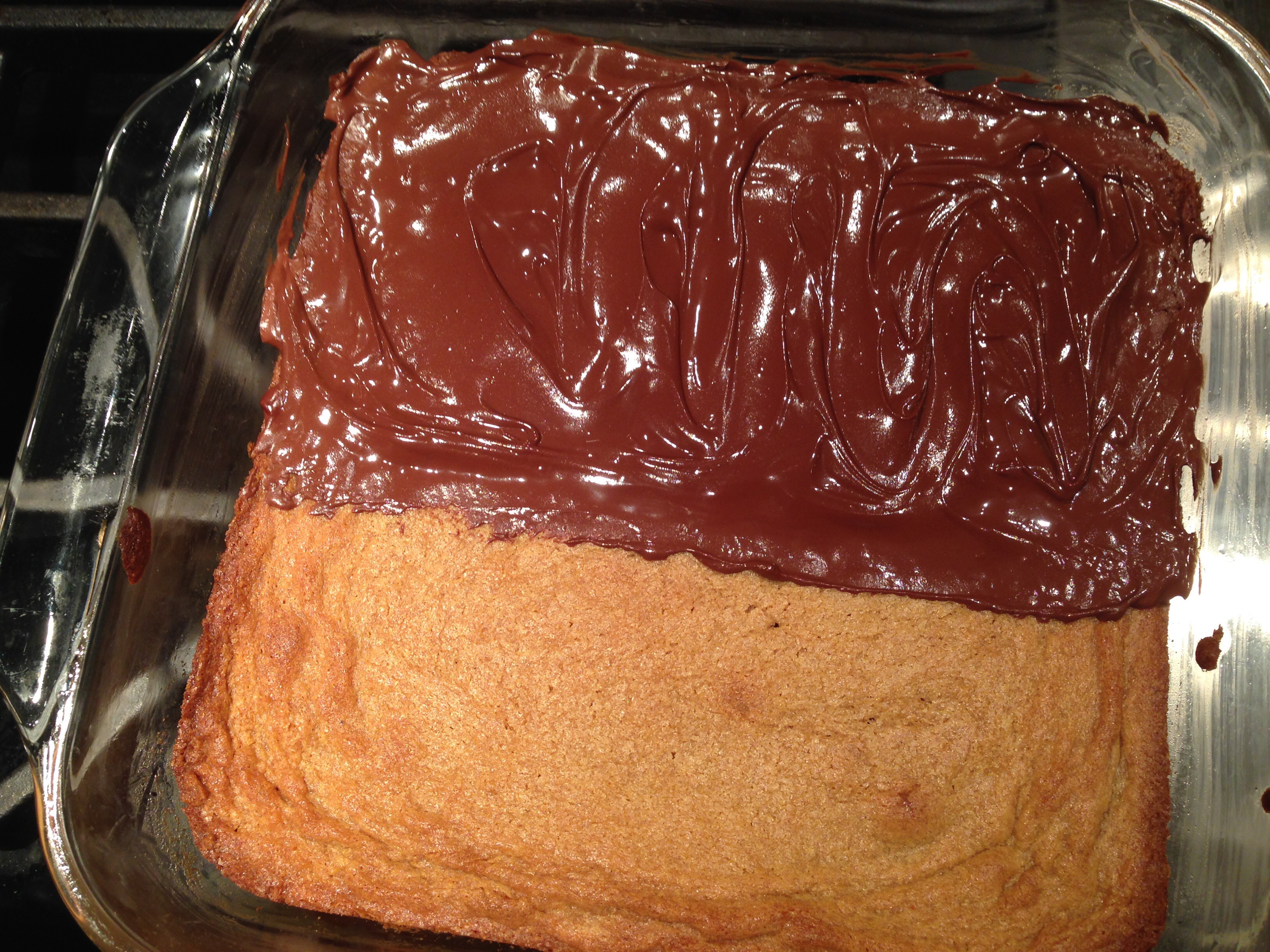 We do like peanut butter in our family. This is a simple square that can be whipped up in half an hour. I happen to think that peanut butter is happiest when combined with chocolate, but since not all the noshers in my family feel that way, I split the difference. Literally. The amounts for the chocolate and peanut butter spread listed below are sufficient to cover the entire square, but I reduce it by half to leave half of the square “unvarnished”. Do as you like…