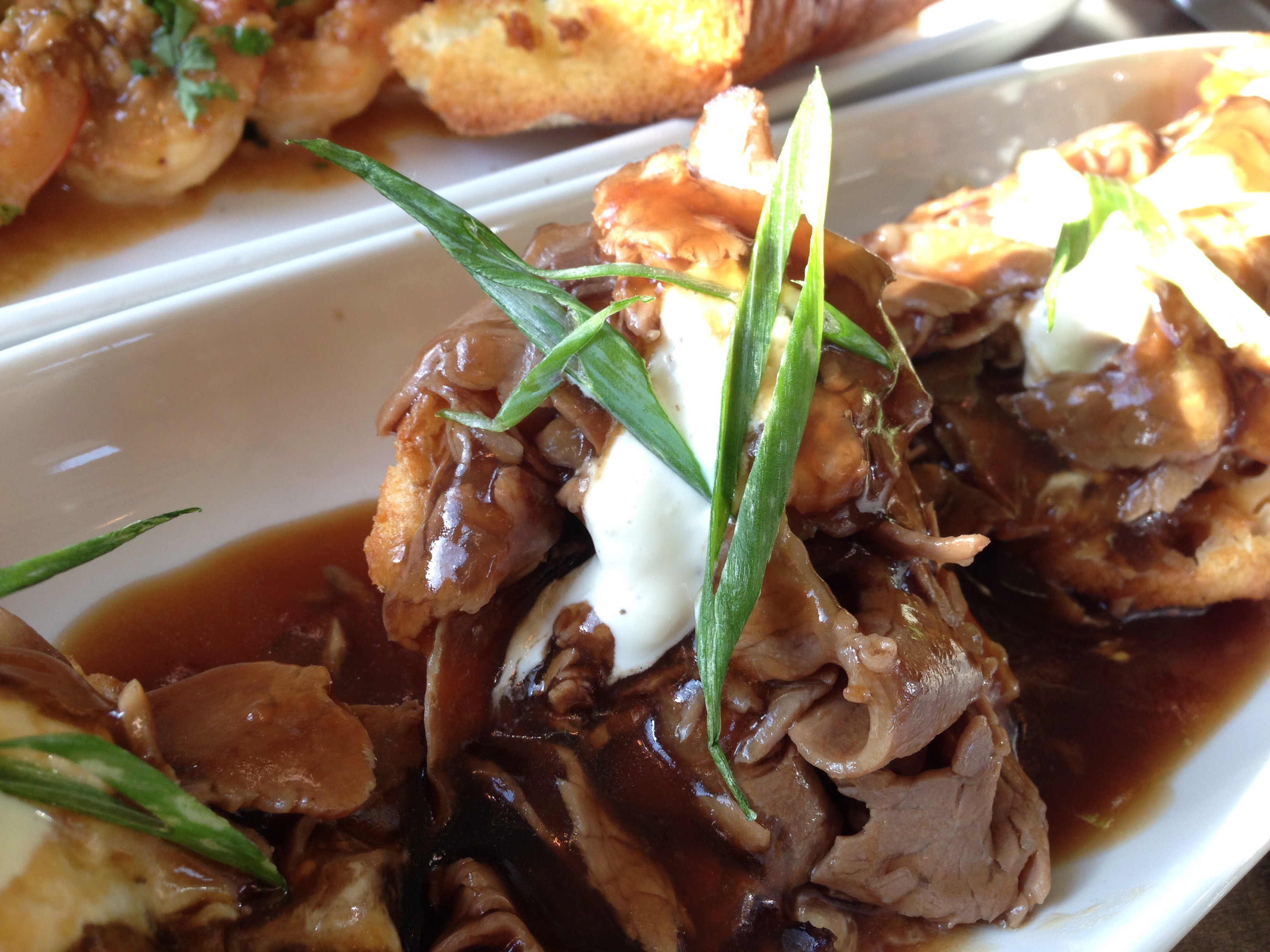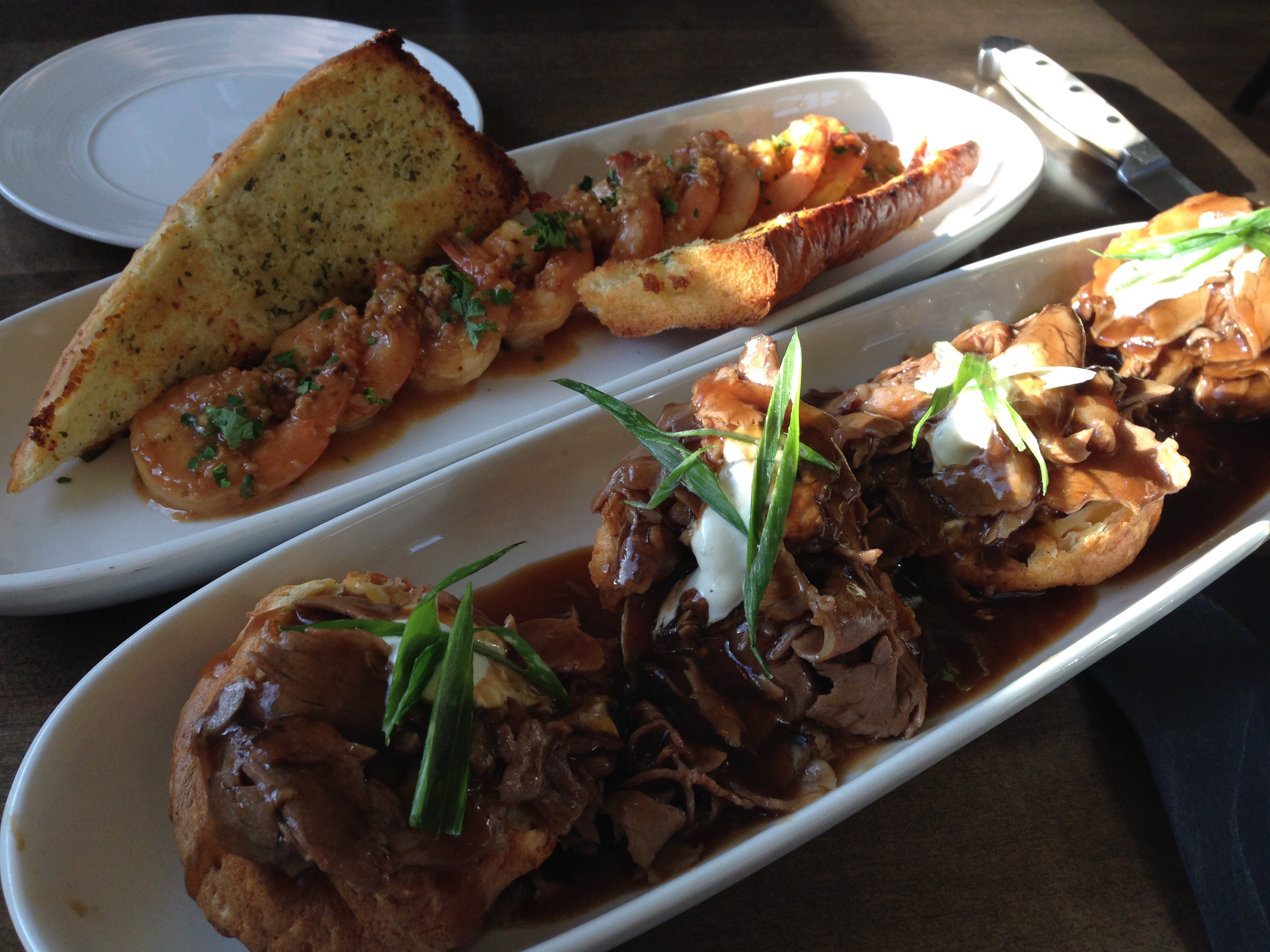 My husband took me out for a pre-mother’s day dinner on Tuesday. We went to Bradley’s and started with the Mini Yorkshire Puddings stuffed with prime rib and topped with horseradish aioli. Soooo good. I might try to make a version of these the next time we have left-over roast. Also above, is garlic shrimp.