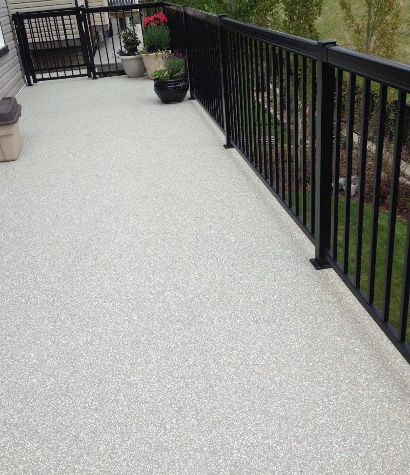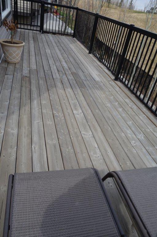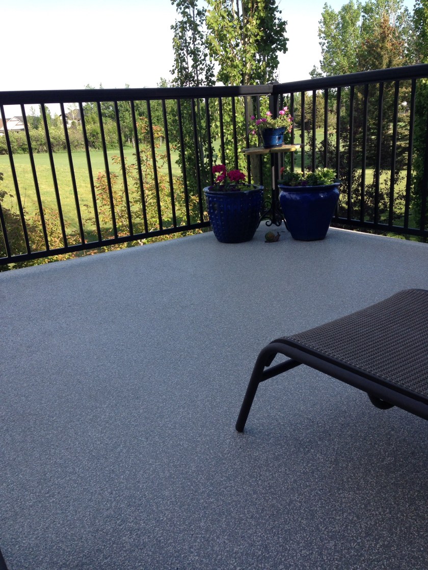 Below is a photo of the deck before. Treated slats were ok to walk on, but allowed rain to drain through onto the “covered” patio below.