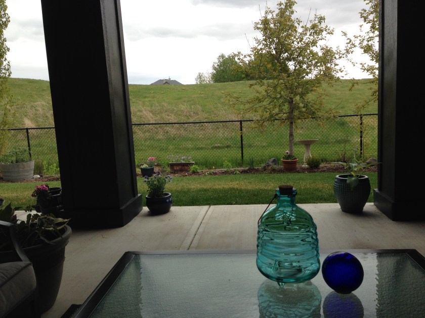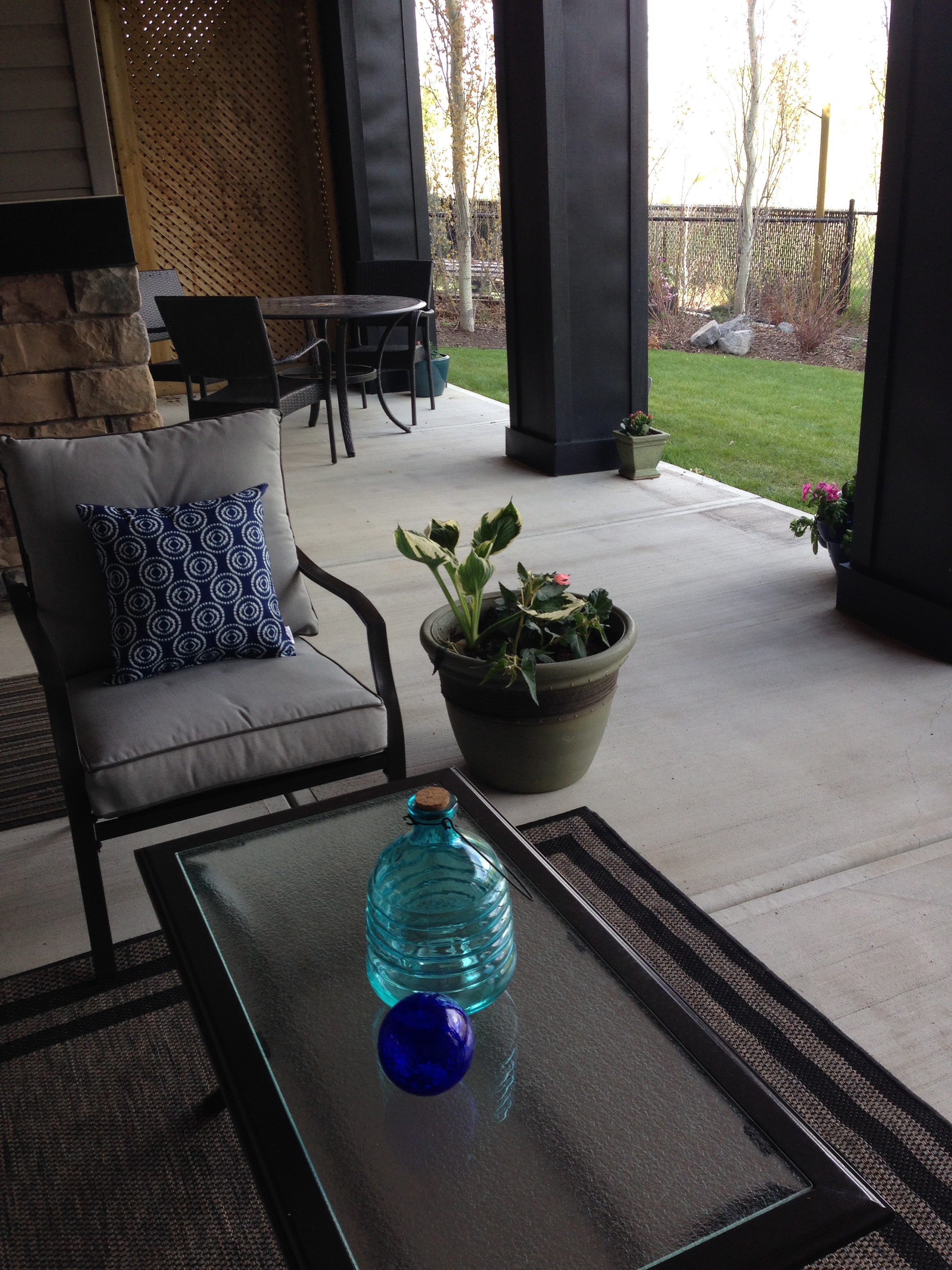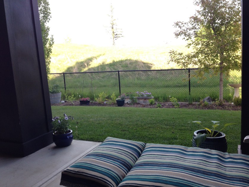 Cozy and enclosed on three sides. I even put out our cushy seating now that it won’t get drizzled on.
