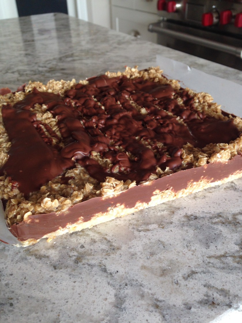 I thought I would wrap up our New Cooks Series for the time being with a no bake dessert. I chose one that can be made with only a microwave or hot plate, as that is the reality in many student residences. I tried this No Bake Peanut Butter, Chocolate and Oat one from Tip Hero. It turned out pretty well.