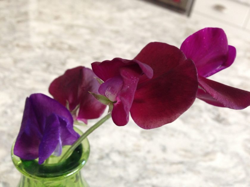 My sweet peas are starting to bloom! Aptly named, they are indeed a “Little Bit ‘O Magic” and smell very nice.