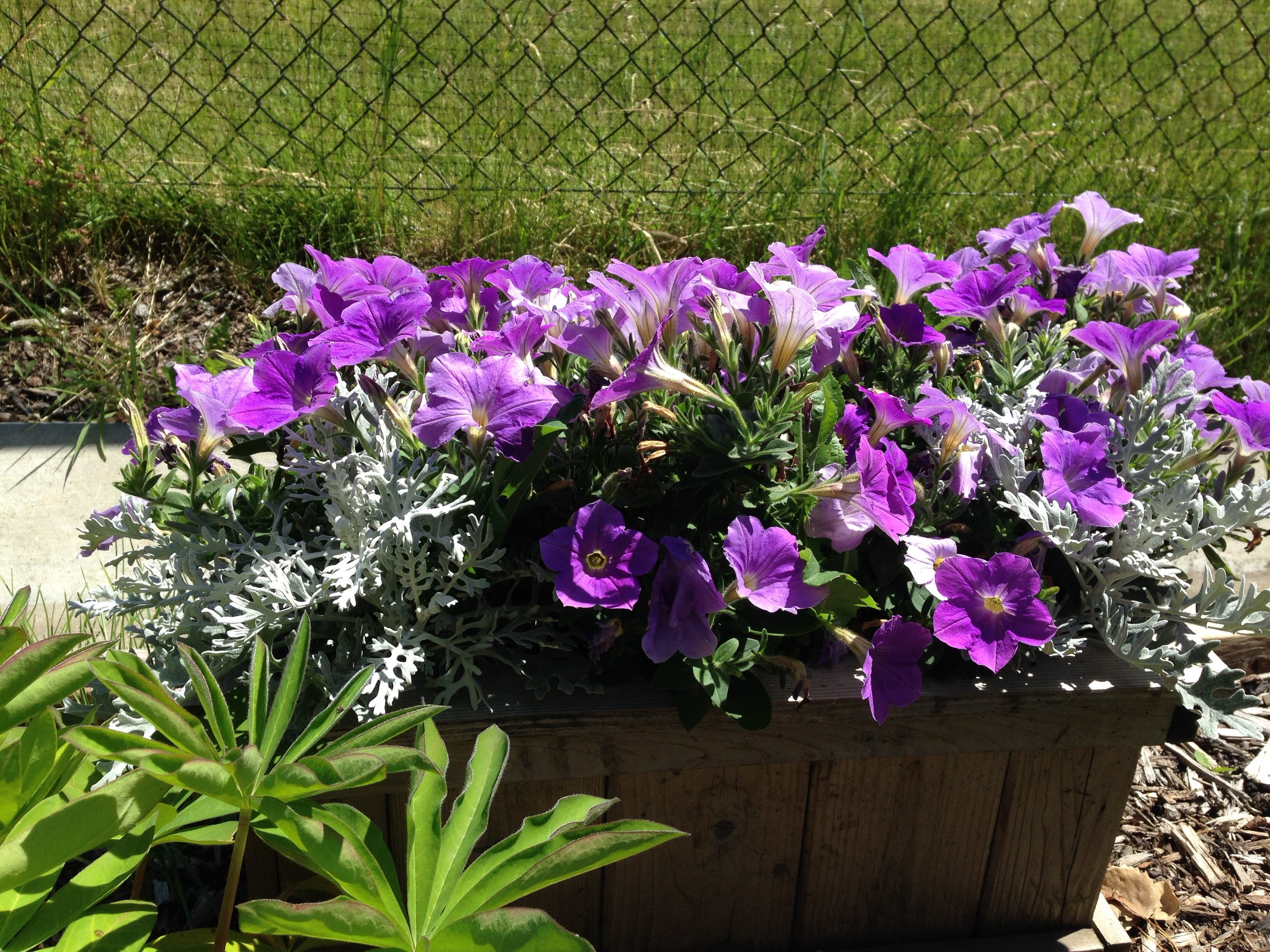 As my new perennials are still small, I used some filler boxes to cheer up the space as they grow. I like how this one done in silver and pale purple is filling out nicely.