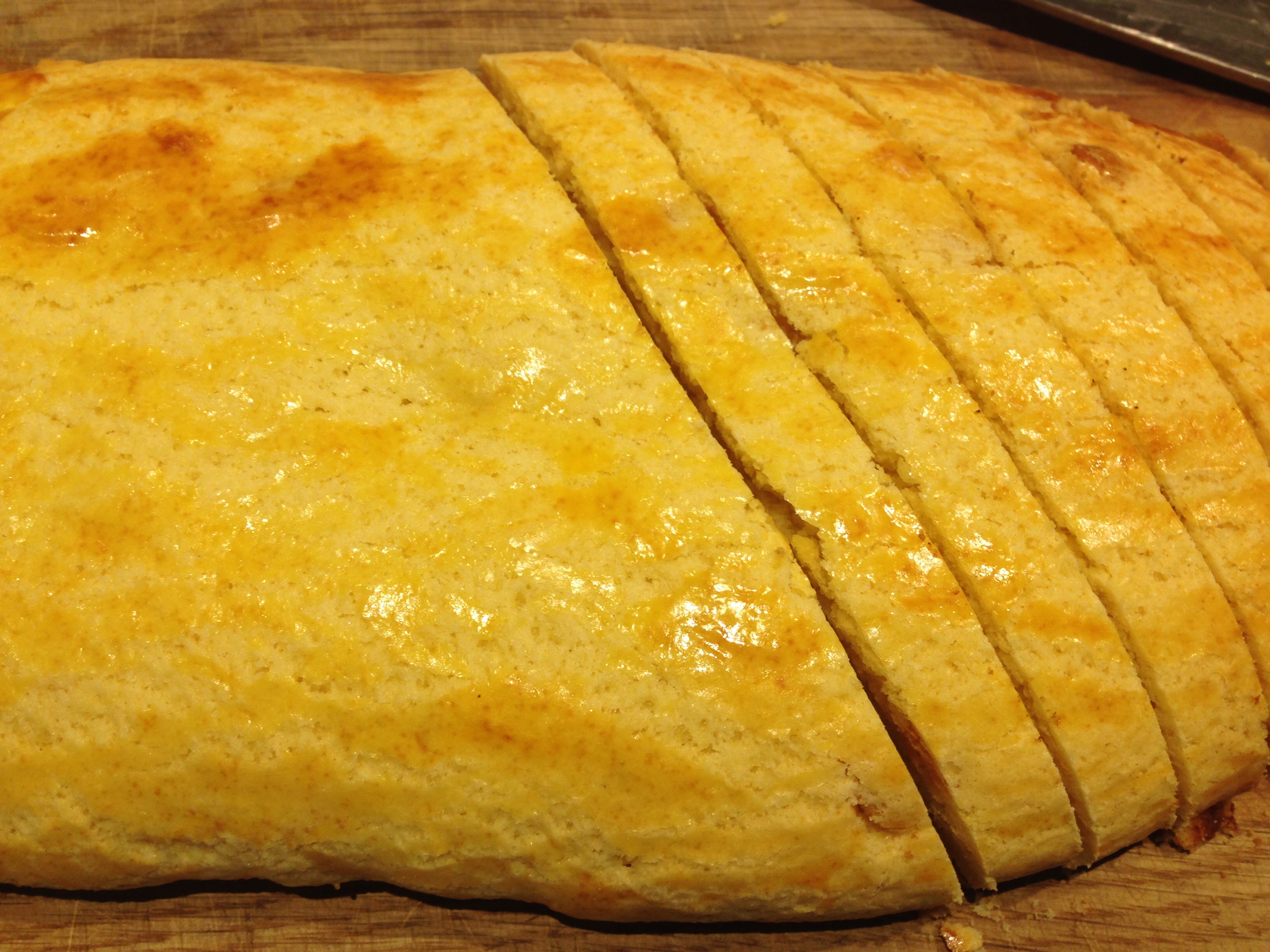 Lay slices, cut side down, on the parchment-covered cookie sheets you just used. Bake in 325 F oven 8 minutes. Turn slices over. Bake 10 minutes more or until crisp and dry. Transfer to wire rack to cool and firm up.
