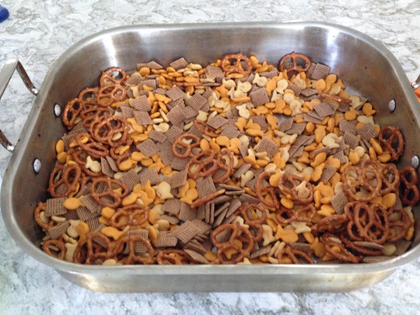 This is a variation on the original Nuts and Bolt recipe found on cereal boxes in the 70s. We swapped some of the cereals, but the sauce is the same as the one my mom used to make. This makes a great alternative to buttered popcorn if you are watching a movie at home, or as a Bag of Yummy in your pack on a hike.
