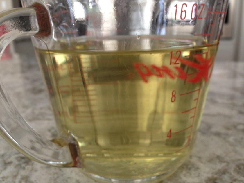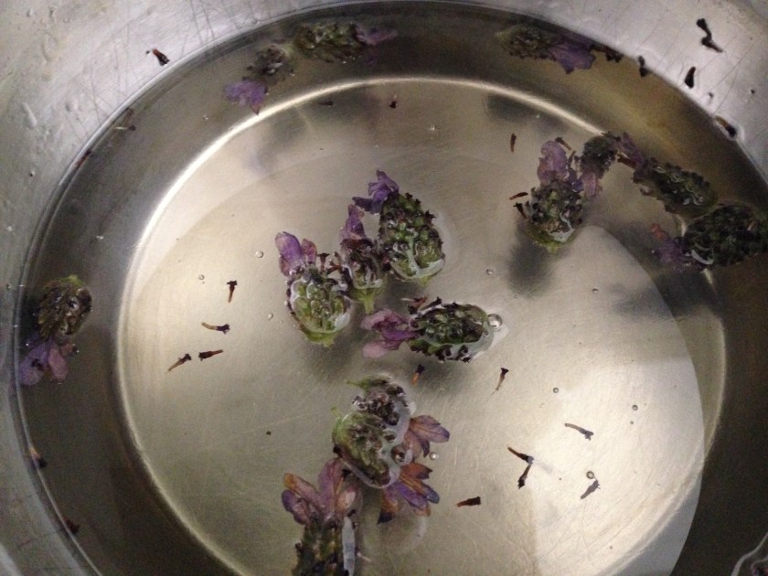 I like to make a sugar syrup to make lemonade because I don’t like little undissolved crystals in my drink. I have occasionally flavoured it with mint, but decided to try lavender, since my plants were just about finished blooming. I am glad I did as it has become an instant favourite in the house.