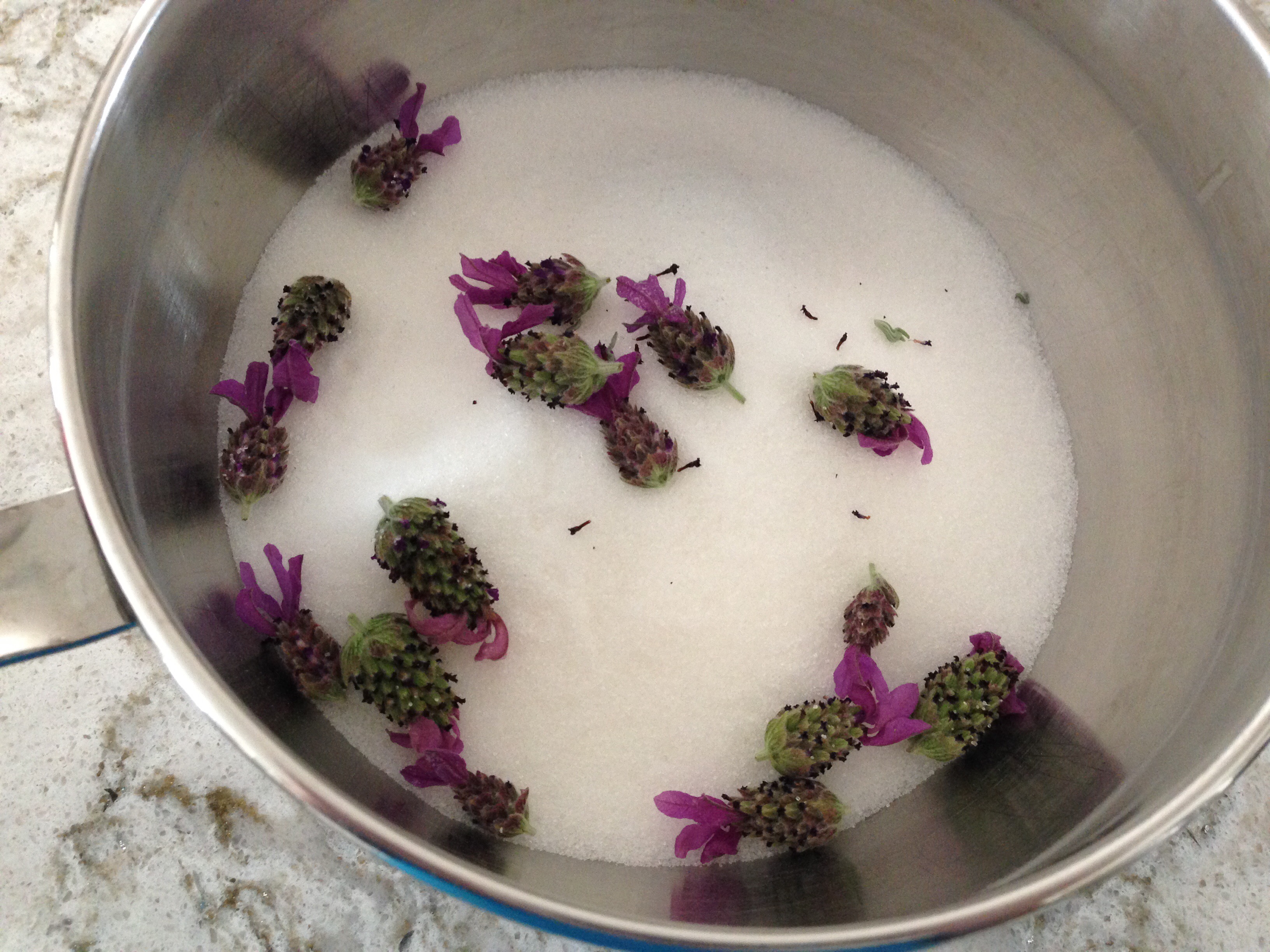 I like to make a sugar syrup to make lemonade because I don’t like little undissolved crystals in my drink. I have occasionally flavoured it with mint, but decided to try lavender, since my plants were just about finished blooming. I am glad I did as it has become an instant favourite in the house.