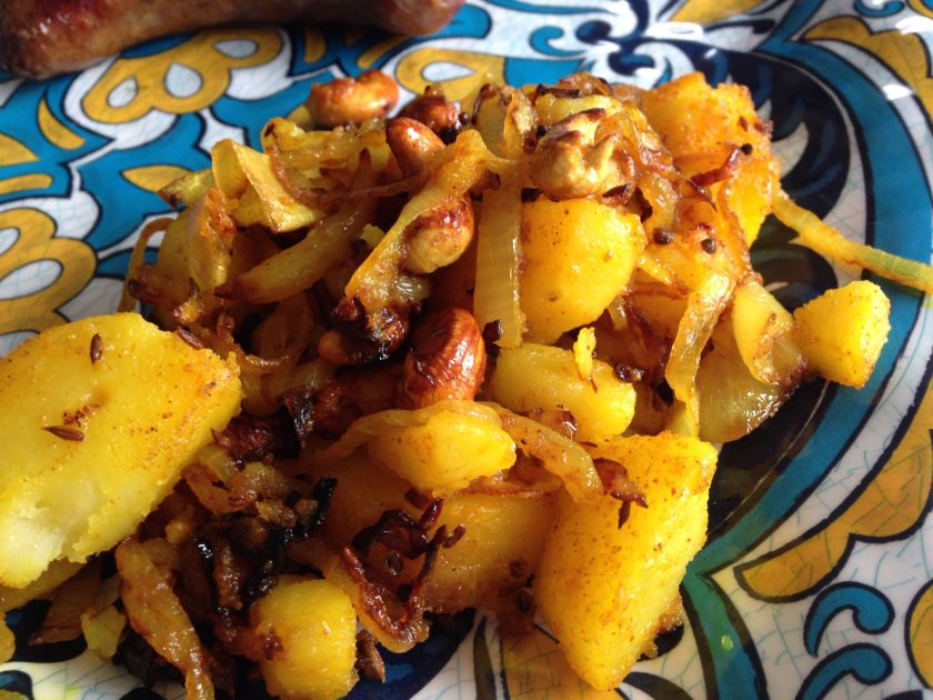Potatoes – my favourite comfort food! Sam Gamgee is regularly quoted in our house: “Po-ta-toes! Boil ’em, mash ’em, stick ’em in a stew”. I love these potatoes made with warm Indian-inspired spices. If you want heat, you can always add some peppers, but I like them with just these flavours.
