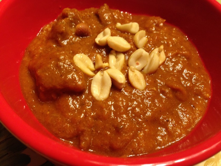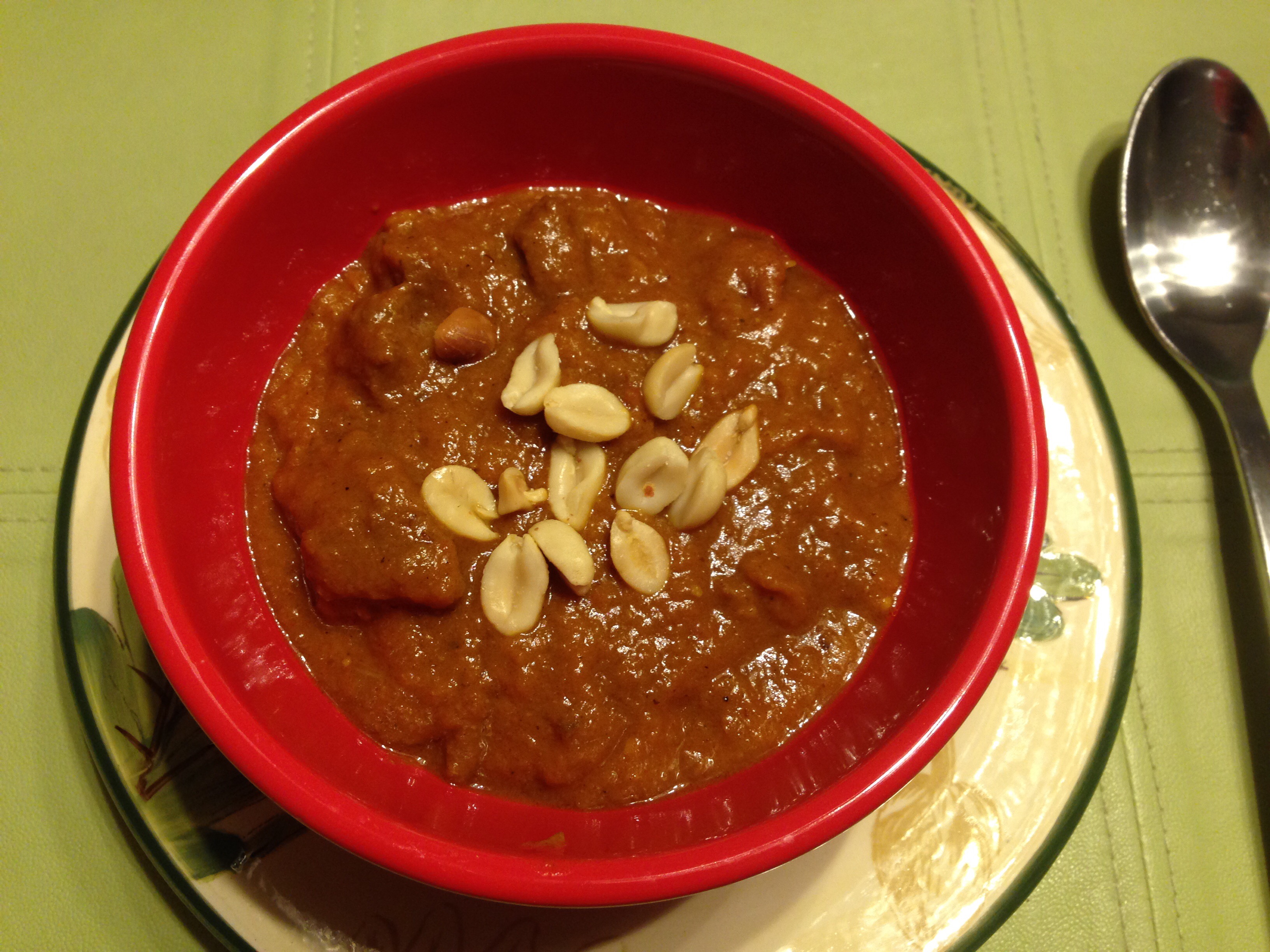 I made this to kick of the weekend, and its luscious peanut sauce turned out to be a perfect match for a dark, cold winter night. A nice change from our traditional stews.