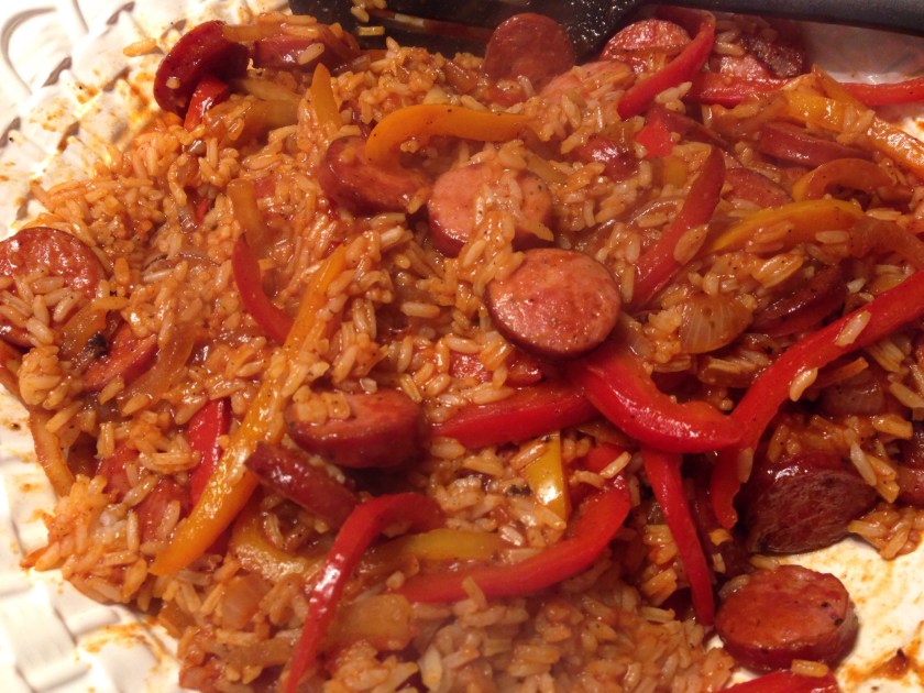 Return the sausages to the pan, adding the broth mixture. Stir until steaming hot.