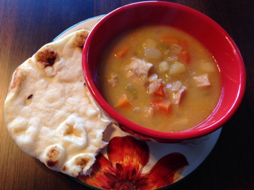 This is a mild curried chicken and vegetable soup with apple and coconut milk. If you like more curry in your bowl, go for it!