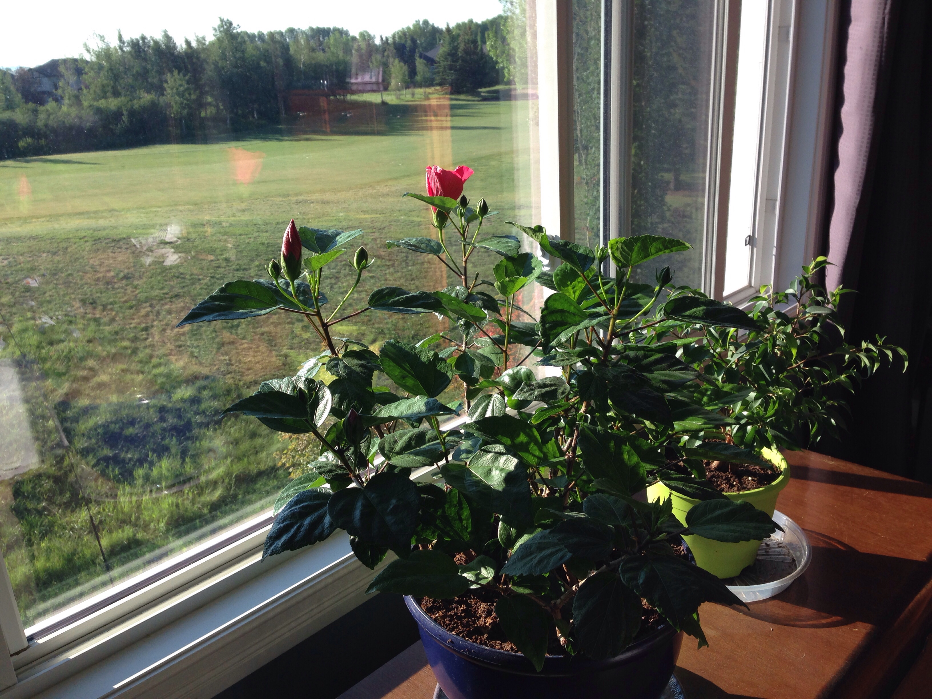 After leaving it by an open window and causing it to drop it’s leaves due to cold, I’ve been babying my hibiscus. It has finally re-folitated and is starting to bloom again. Wooo!