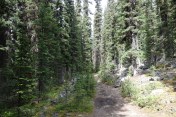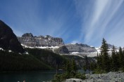 The Boom Lake Trail is in Banff National Park, just after you turn on to the road to Radium (Highway 93). It is an easy 10km round trip hike on a wide, clear trail. It’s more of a walk than a hike, accessible to families, with only 175m of elevation gain. It ends at Boom Lake which is surrounded by mountains still sporting some snow. The water is so clear you can watch the fish swimming past, and one of the fellows on the shore was catching them quite regularly.