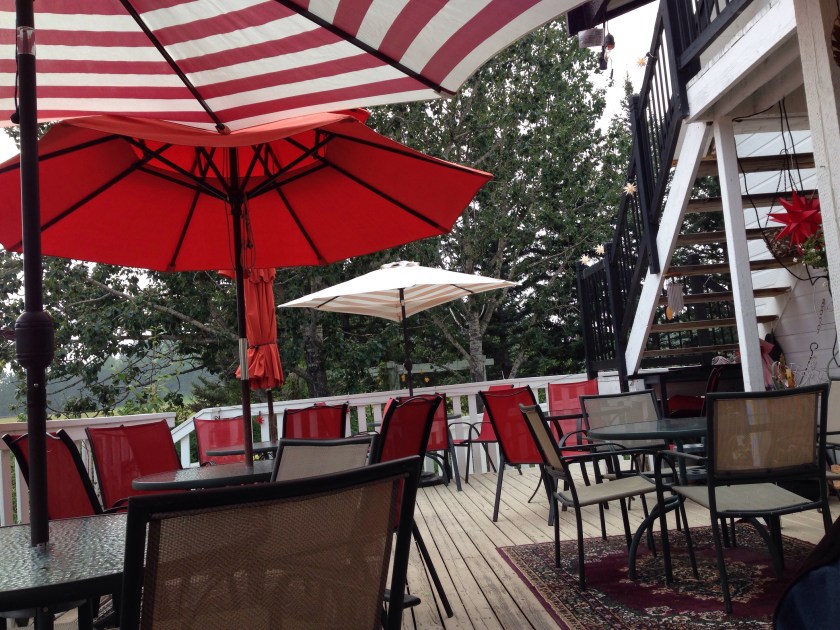 We chose to sit outside on a rare smoke-free day (due to wildfires in BC) and enjoy the birds and the views.