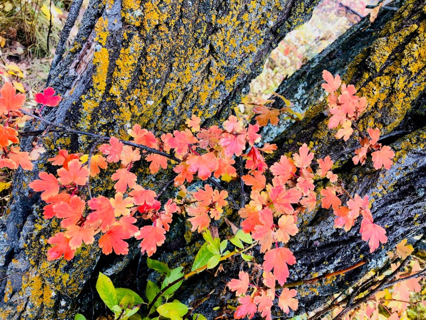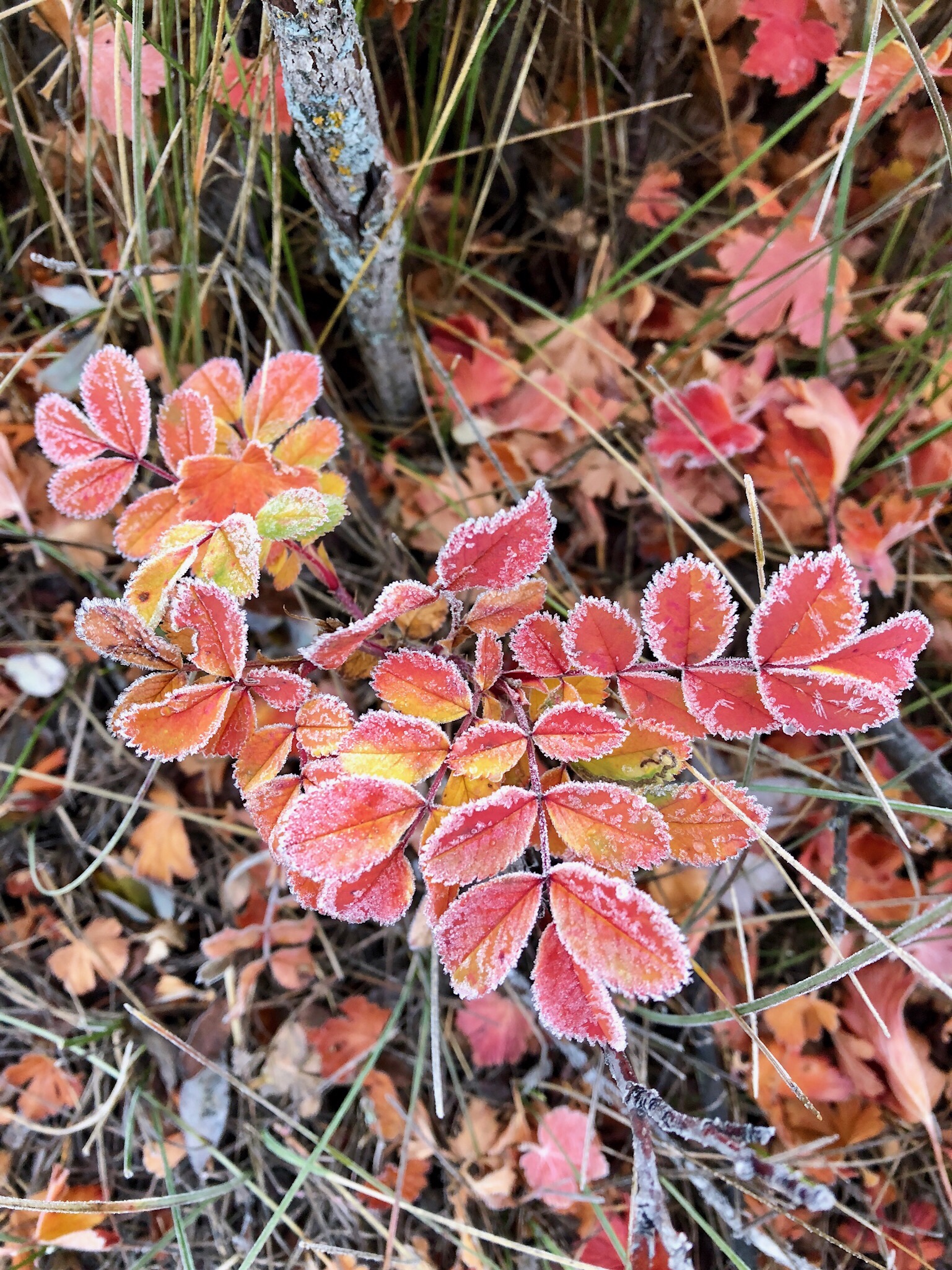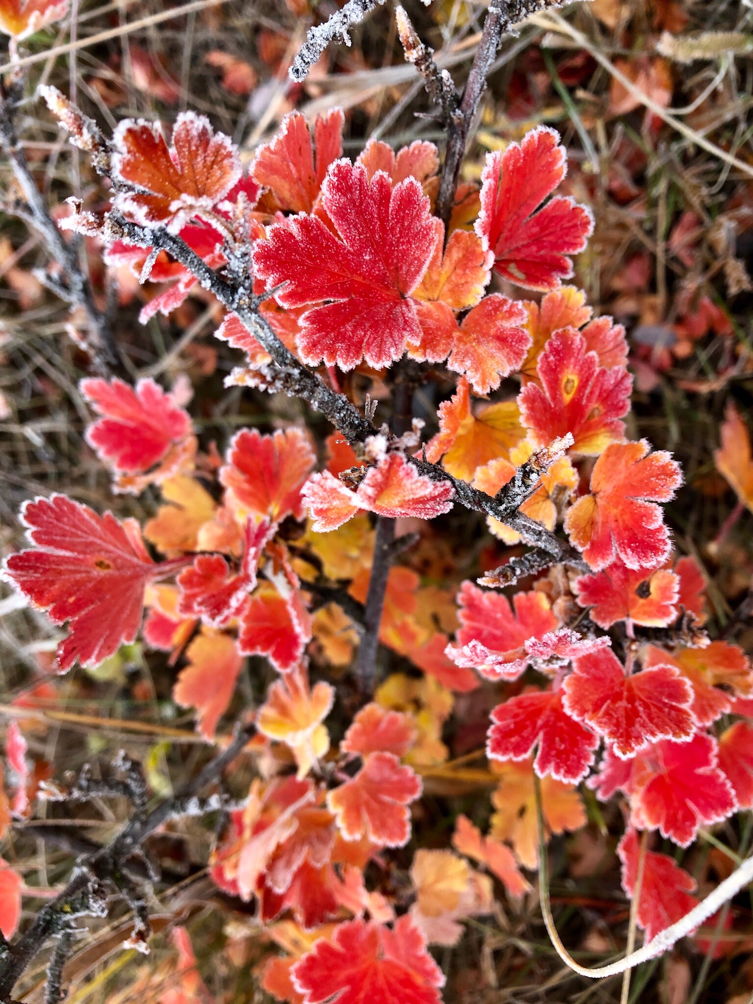 Today: the beautiful, natural colours of fall- reds, oranges, yellows and purples, sometimes tinged with frost, sometimes dusted with snow!
