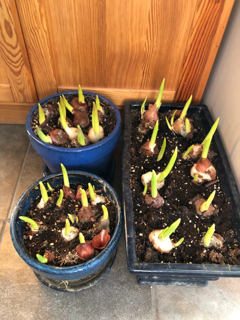 I have brought in a few of the tulip pots and will bring in another pot every weekend or two to keep things blooming until spring.