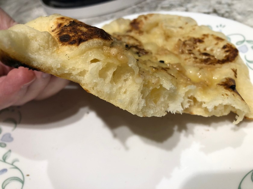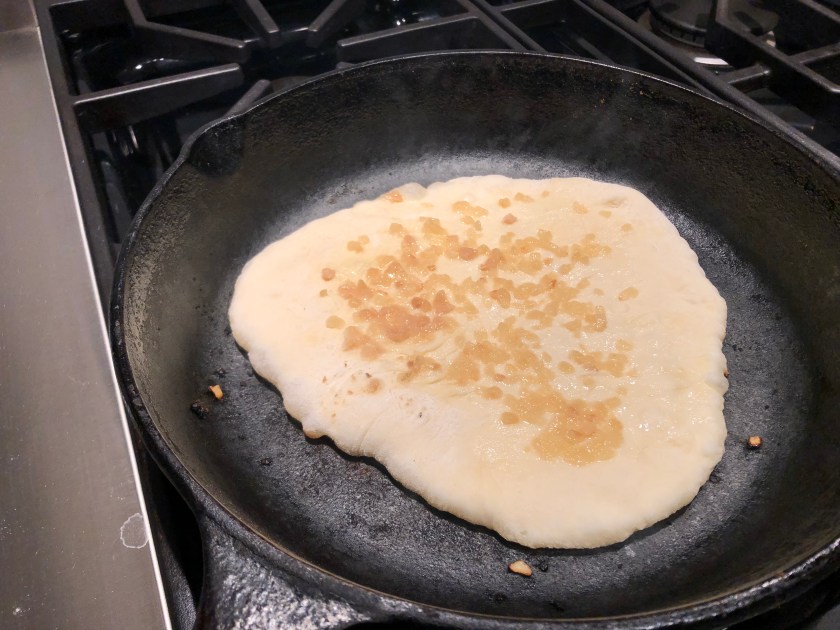 This no-yeast naan bread was one of the things my husband made to fulfill his “learn to cook more things” resolution. He found the recipe for this at Kanak’s Kitchen, which I am linking here. He followed her instructions, except, he divided the dough to make them small enough to fit in our cast iron pan. Also,instead of holding the pan upside down to brown the top, he just flipped the bread over in the pan like we do with tortillas. It was fluffy, light and delicious. He can make those anytime!