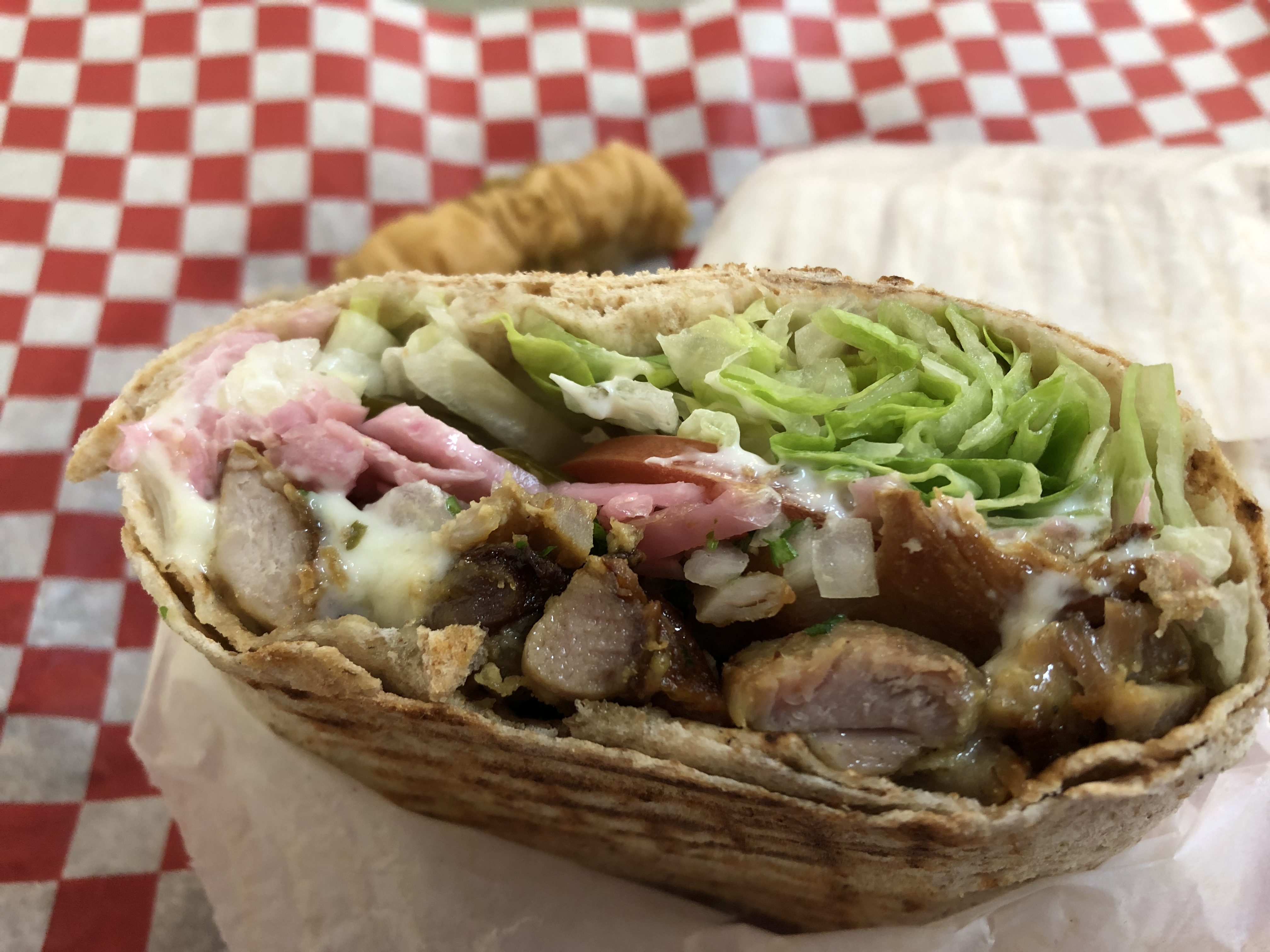 My husband goes to a little shop called Mazaj once a week and raves about their shawarma. In fact, they know him by name and have his order memorized. He surprised them by coming in on “the wrong day!” and with a wife besides. I had to laugh. Naturally, I had to try his “usual” – chicken shawarma. The wraps were very different from what I have had before, and I have to say I am a fan. The chicken had nice flavouring and the toppings were tasty as well. Time and calories well spent!
