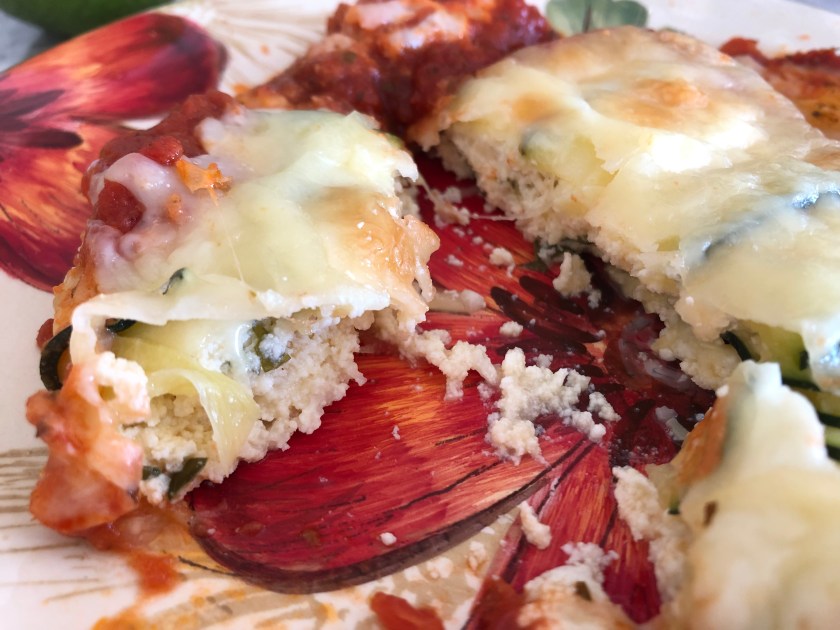 I love these little cheesy pockets wrapped in zucchini strips! They are so easy; delicious for a main or a side.