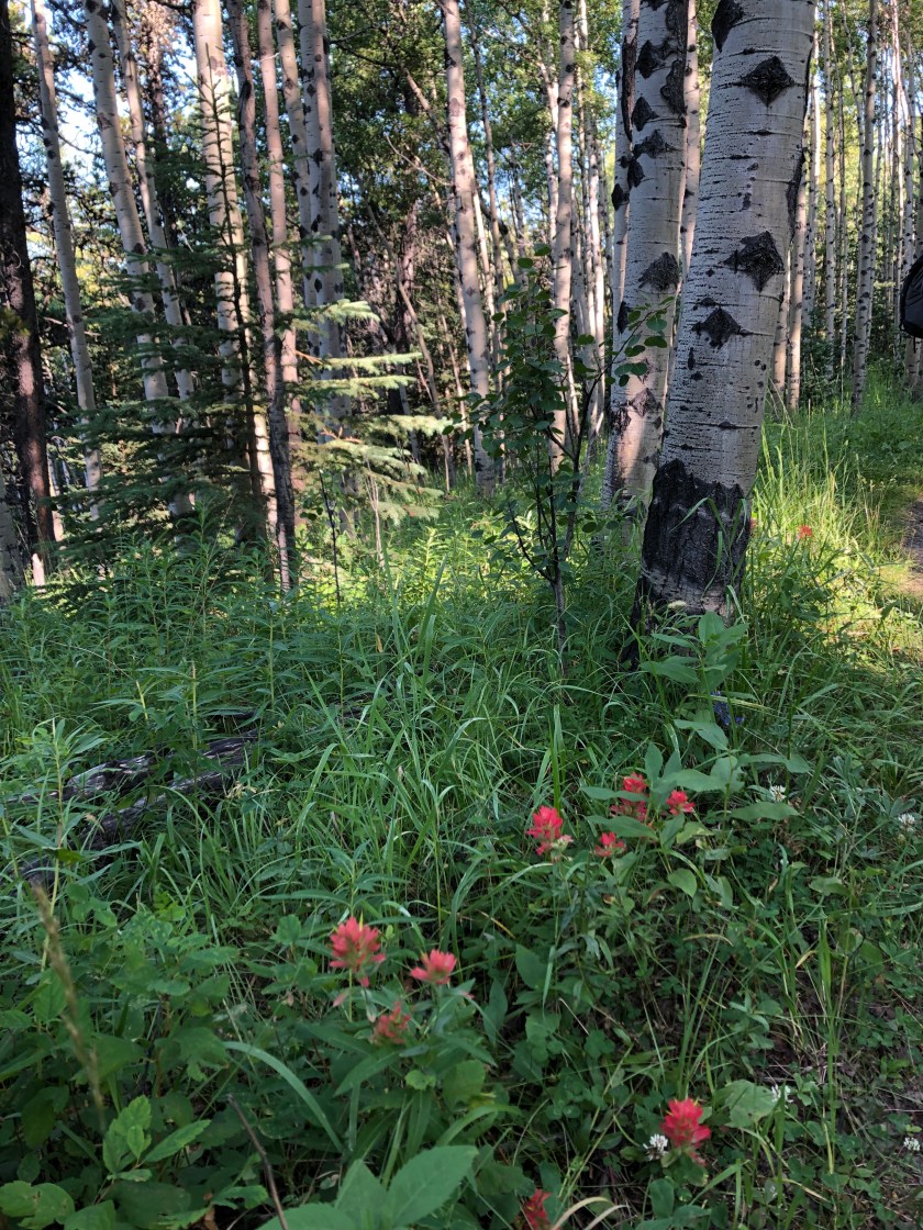 If I did this again, I would skip the loop and do it as an in-out hike to avoid having to walk along the highway on the last part of the loop. It is more of a stroll through aspen forest and flowery meadows. Enjoyable, though not many mountain views.