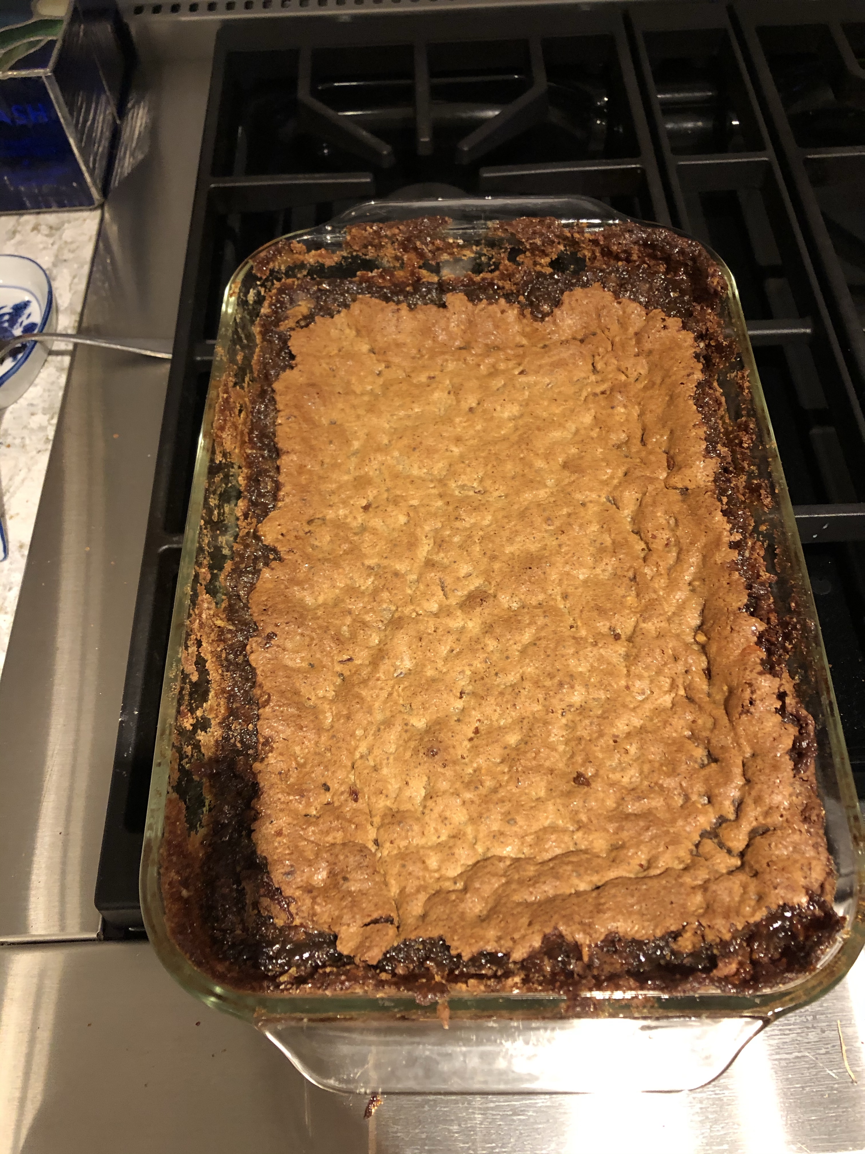 Mix the topping ingredients together and pour over the top of the base. Bake in a 325 degree F. oven for about 45 minutes. Cool and sprinkle with icing sugar.