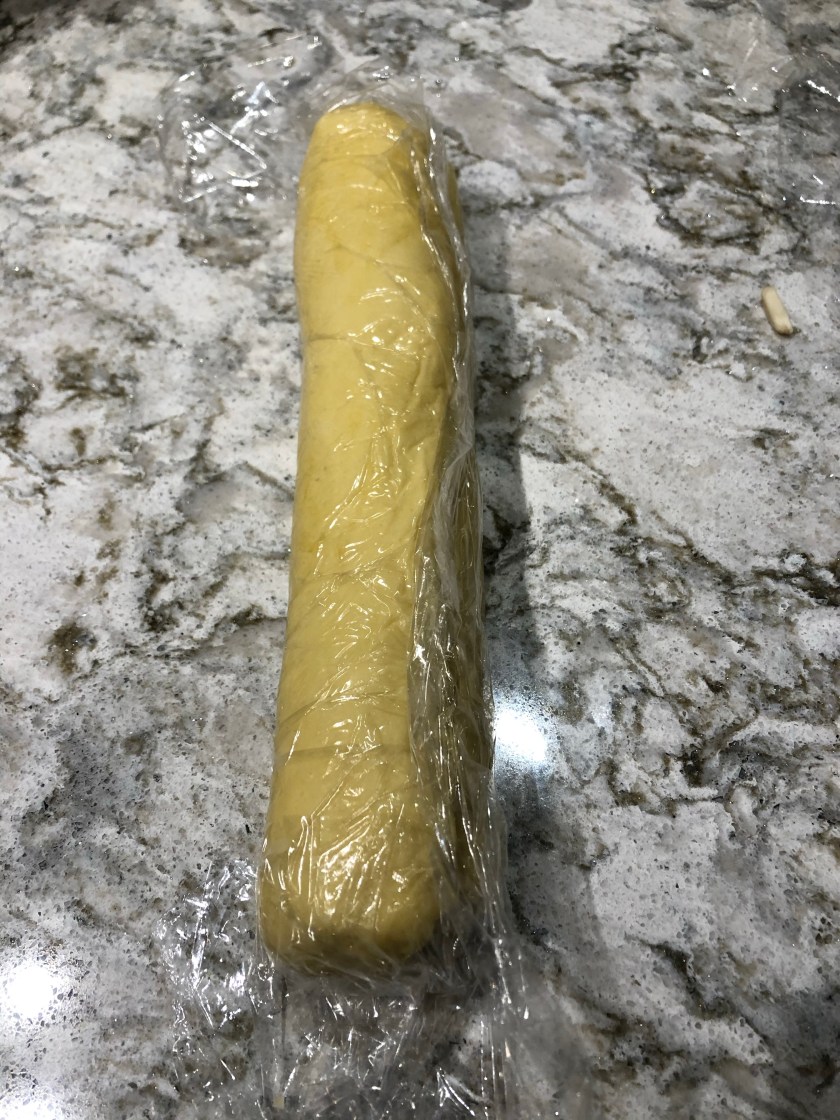 I rolled it out on plastic wrap as she suggested and was really glad I did. I makes the whole thing easy to handle as the dough is so soft.