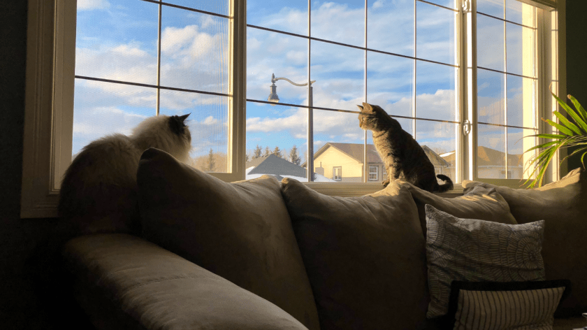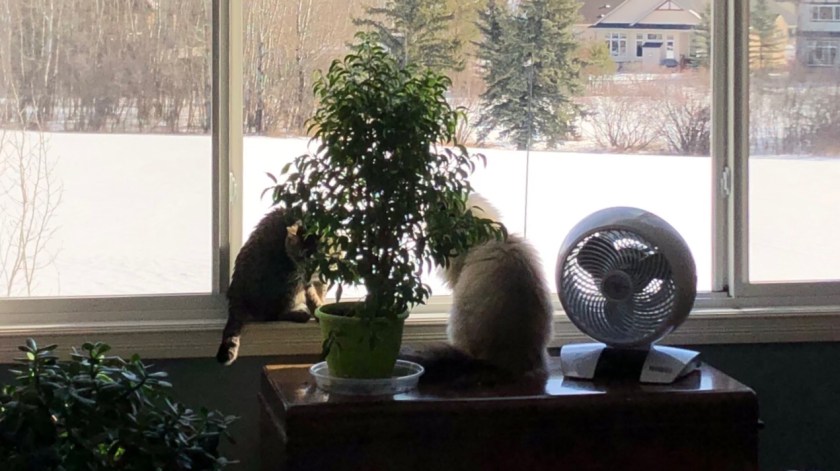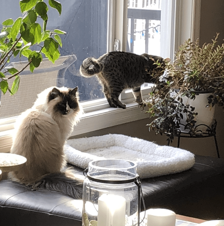 Tickle is helping us teach her to be a house cat, and she is giving him the companionship he has been missing.