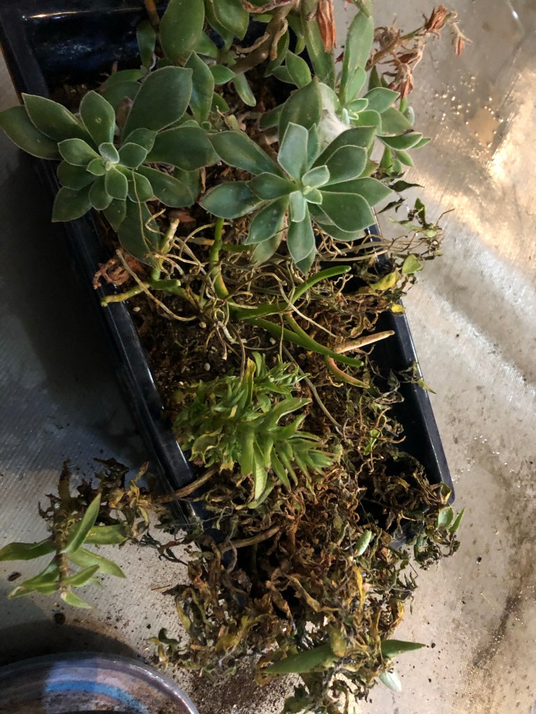 I have a strong attraction for succulents. They are so forgiving and they come in a variety of interesting shapes and colours. Sometimes when you bring succulents back indoors for winter, they lose condition after a few months and start to look worse for wear. Don’t lose hope! Just clean them up, take cuttings and renew the arrangement.