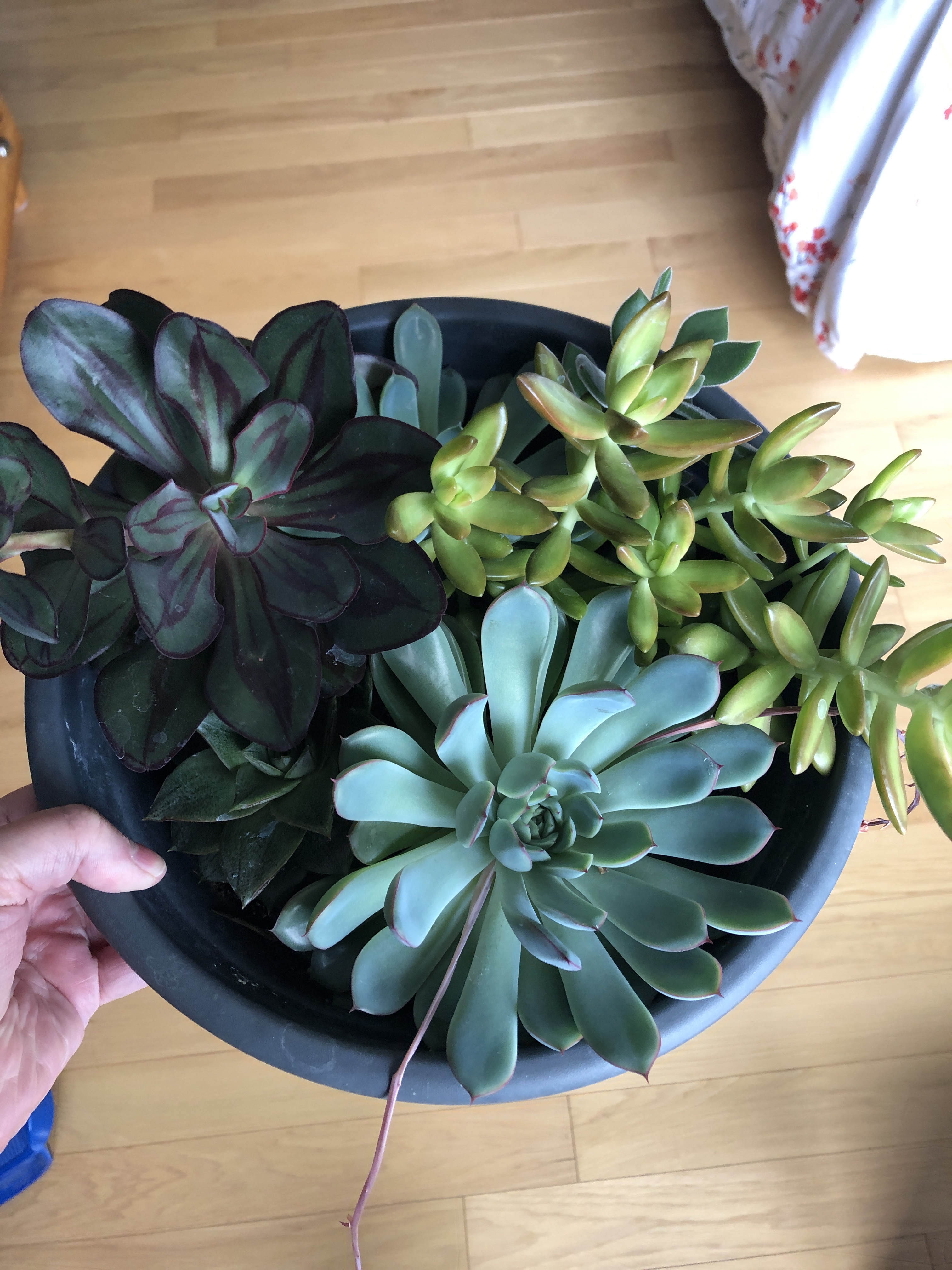 In the rectangle pot, I decided to go for all one type (above), as it was the one that wanted to thrive for me after the winter die back (see the photo below). All the cuttings took, so it is looking pretty good. I can’t wait to see how it will perform when it’s been in the sun and heat for a couple months.