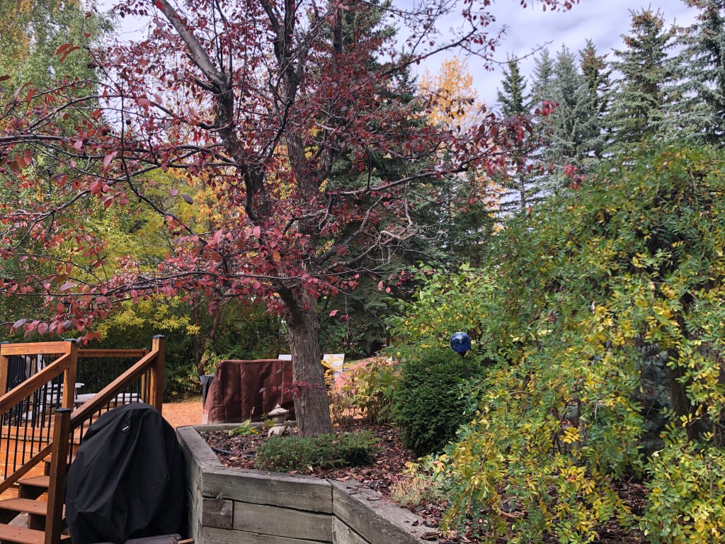 My September garden looks very different this year for a good reason – we moved! I have been assured by our neighbours that deer are not a problem here, which is a great relief. The garden has a number of mature trees that have been showing off their autumnal colours this week. We have had a glorious, warm September here with no hard frosts, huge winds or massive downpours. Such a gift when moving houses and exploring a new garden.