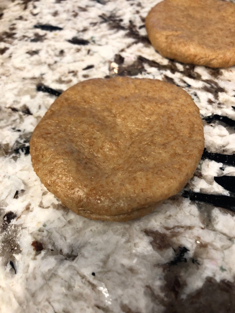 - Using a rolling pin, roll each ball into an 8” flat circle