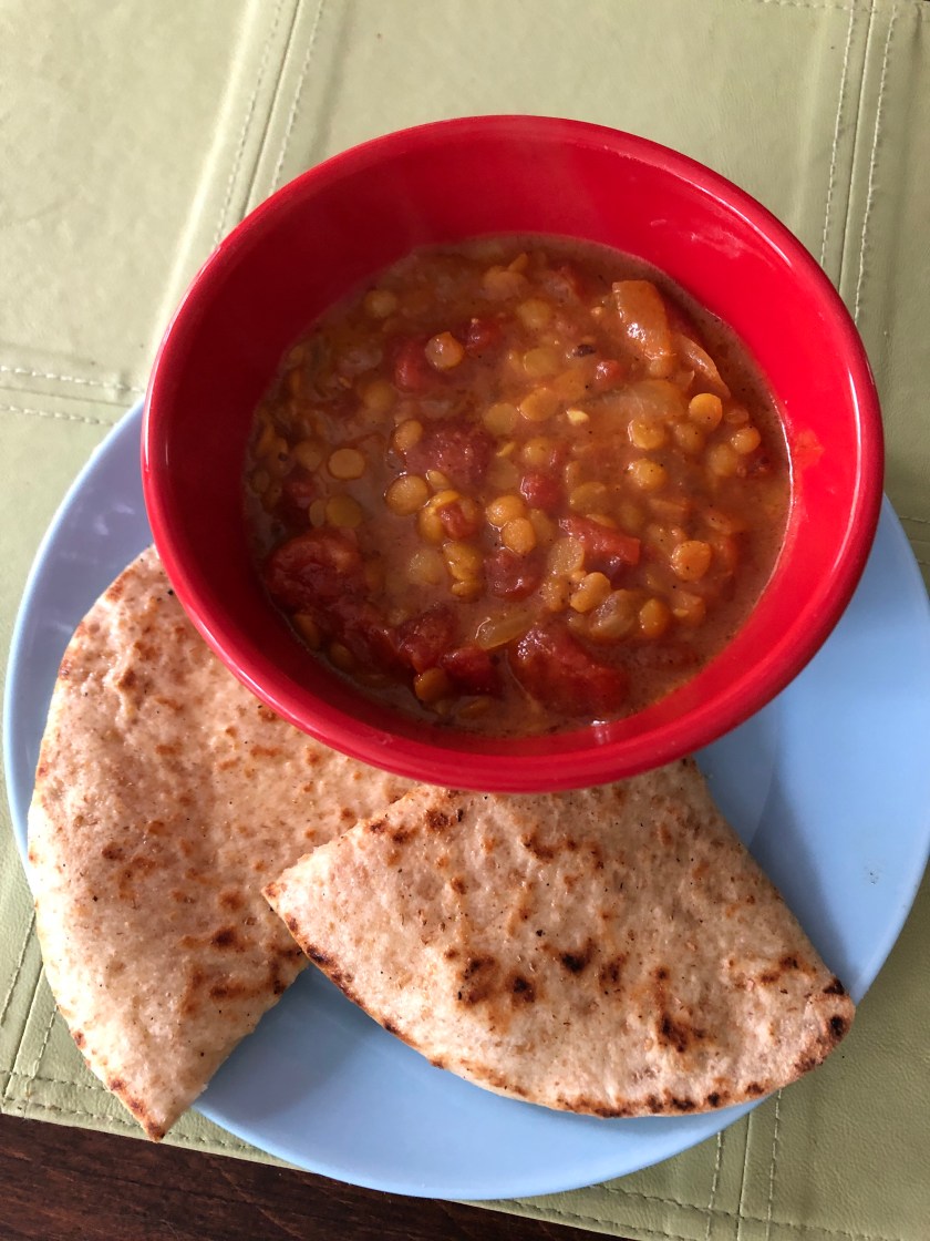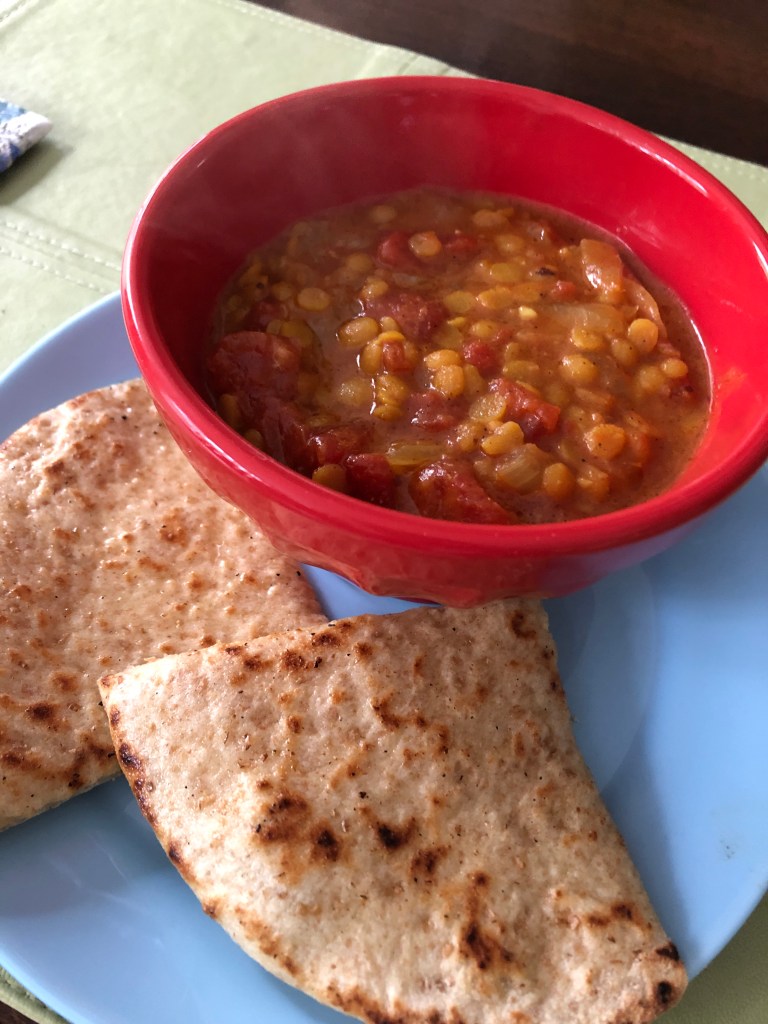 This coconut curry is one of our favourite lentil recipes. You can eat it over brown rice or on its own with some nice pita to dip into it. (The pita recipe will follow later later in the week.) I like to make enough for some good leftover lunches.