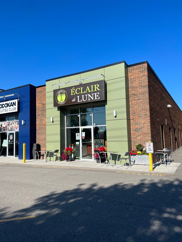 Eclair de Lune is a cute French Bakery/market in Calgary with a good assortment of pastries. There was a small line up at morning opening, which I always think is a good sign of things to come. As we are still on a quest to find the best almond croissant in Calgary, that is what we tried. We found the pastry to be slightly more bread-like, though with lots of layers. There was almond filling, but it was light on almond flavour. Good effort, but I am still hunting….