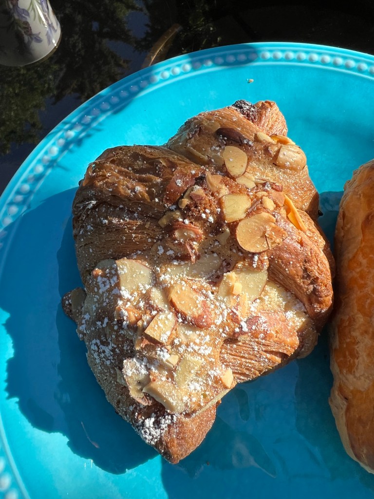 La Boulangerie produces beautiful French pastries and is the current holder of my favourite of the French style almond croissant in Calgary. The pastry is incredibly flaky, crispy and light. The almond filling is a pocket in the center that has a good flavour and is not too sweet. I would like slightly more of it, or an end-to-end distribution, but otherwise it was excellent. I have to mention that we visited this bakery twice as they were sold out of almond croissant on our first visit. The quality of the choices below were what made us want to return. Besides, Saturday pastry breakfast in the garden is not such a terrible way to enjoy a summer morning.