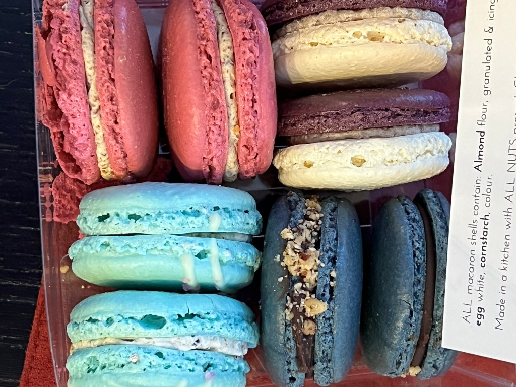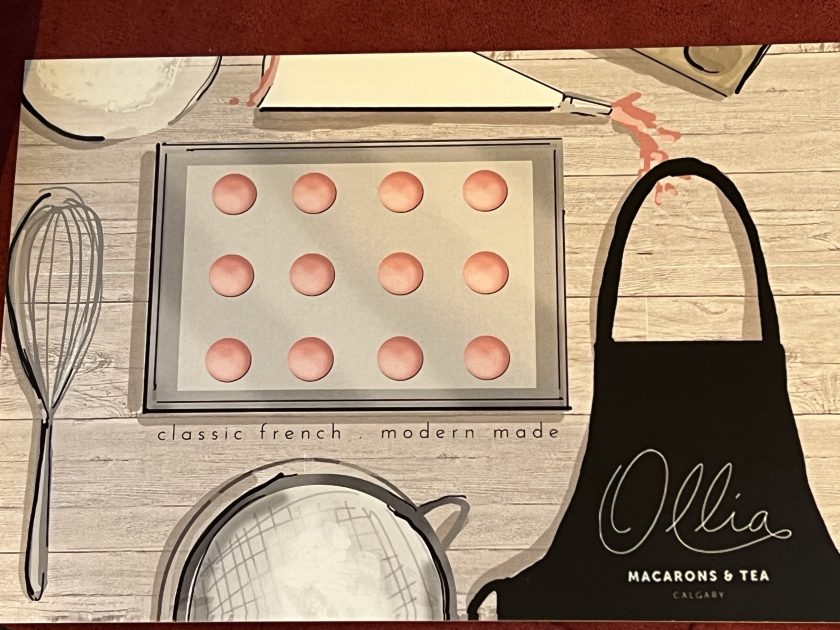 As part of their food bank drive, CBC Radio Calgary has certain businesses partner with them to raise money for the food bank as we approach Christmas. Friday it was Ollia Macarons and Tea who were donating 100 percent of the day’s sales of their Holiday Pack of macarons, which consisted of 2 stroopwaffle, two hazelnut and chocolate, two stollen and 2 chestnut. Awesome. I wanted to support them both so bought the holiday pack and some tea. I can highly recommend these macarons as they all have distinct, delicious flavours, that are not overly sweet.