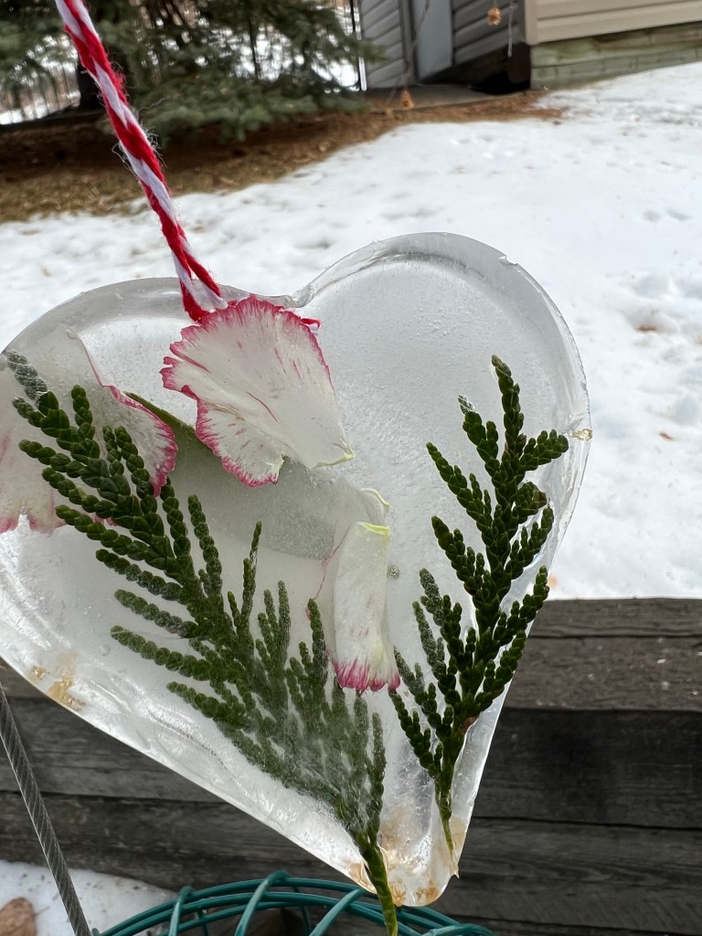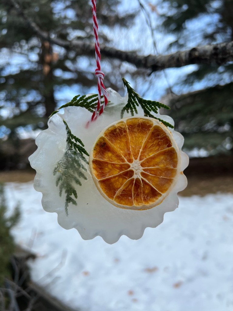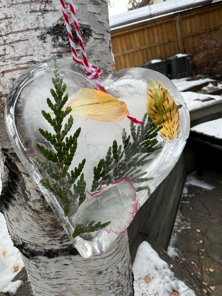 Wow! So interesting! What great way to utilize the cold/ice with natural decorations. Brilliant!