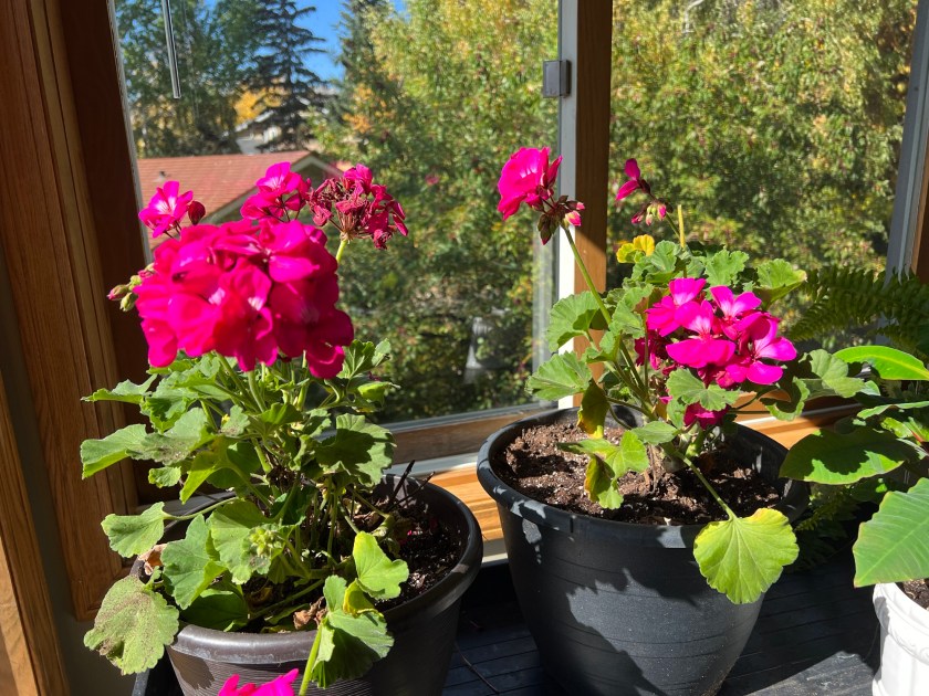 - When I have had space and good light, my favourite is to overwinter them in pots and grow them like a houseplant. I hose them down (in case there are pests I don’t notice), take them out of their larger outdoor container, put them in a smaller pot with fresh soil and bring them indoors. This also makes it easy to make extra plants – see idea 2.