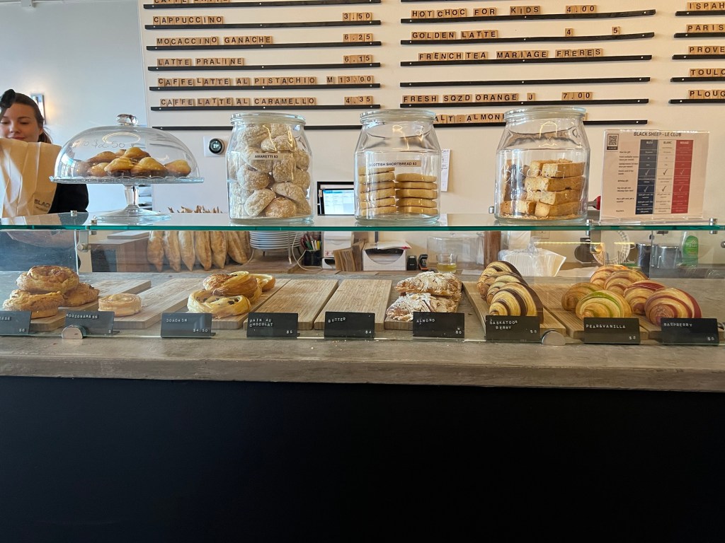 Our weather warmed up and we decided a little delicious fun was required Saturday morning. We started at the Calgary Farmer’s Market and The Italian Store (I need to do a blog on this shop!) to get some groceries. We wanted to pick up a couple of gifts, so headed to 17th Avenue and had to stop at The Black Sheep to get a Chocolat Viennois (hot chocolate made with chocolate ganache, orange zest and whipped cream) and a Pear and Vanilla Croissant for breakfast. Delicious! It was warm enough to eat it on the bistro seats in front of the patisserie. What a change from the -40C temperatures earlier this month.