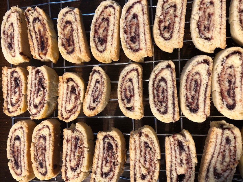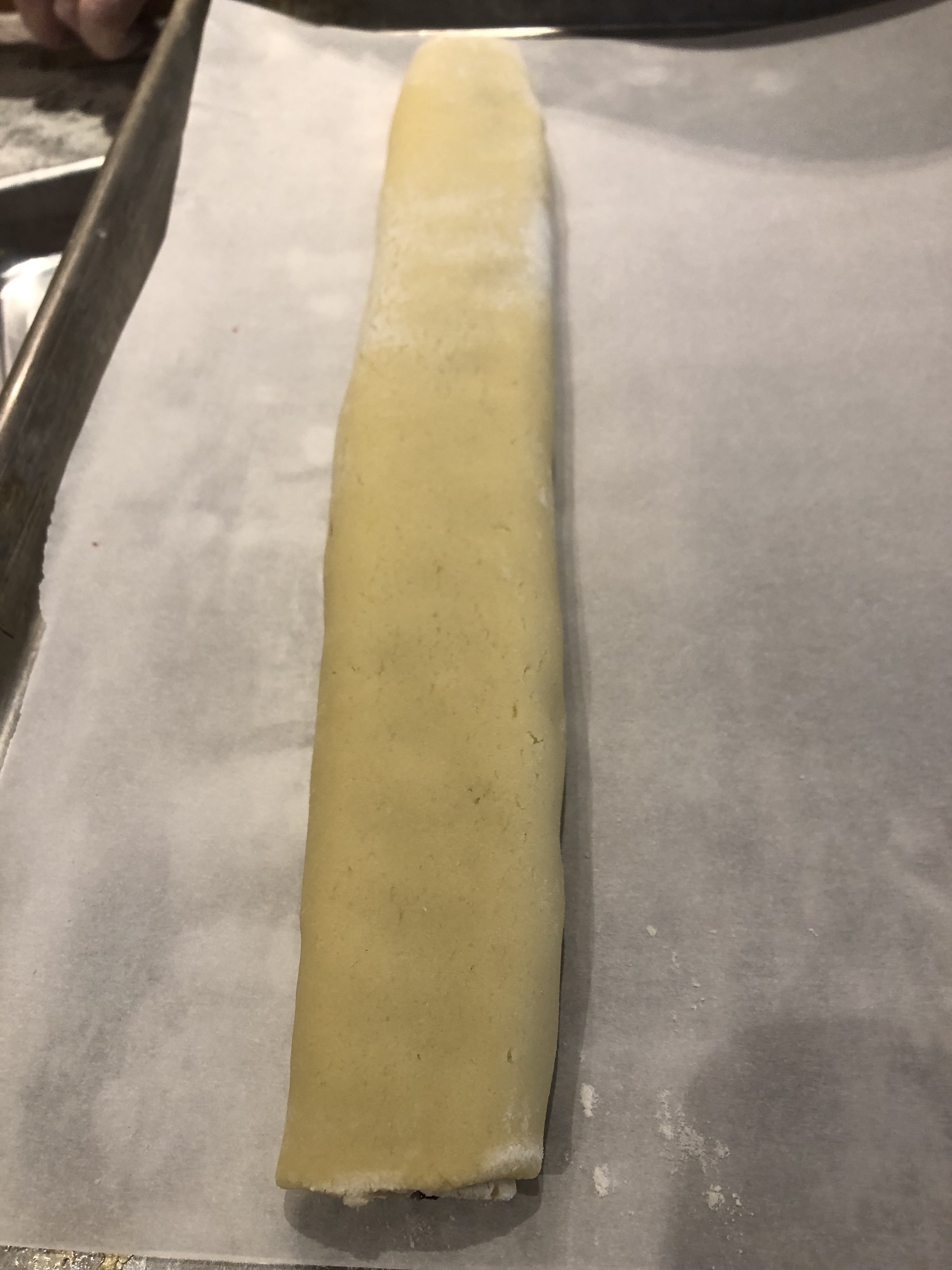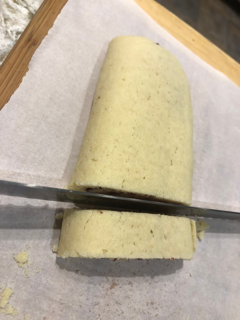 As part of our annual cookie baking day (our 36th) my friend and I tried this recipe from Taste of Home. We always make biscotti and have a few we rotate. My favourites are on the post Three Biscotti Variations, but there other ones on my site as well. This is the first time, however, that we have tried a swirled one. The dough is more fussy than the one we base our variations of off, but it was really tasty and the swirl looks nice on a mixed plate of cookies. I have linked the recipe above, but will include some photos to help you visualize the directions. The only 3 changes we made to the recipe were: