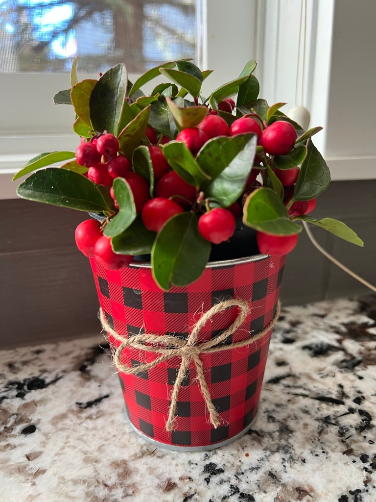 At Christmas I also like to pick up a couple seasonal plants to catch my eye around the house – this year winterberry and lemon cypress.
