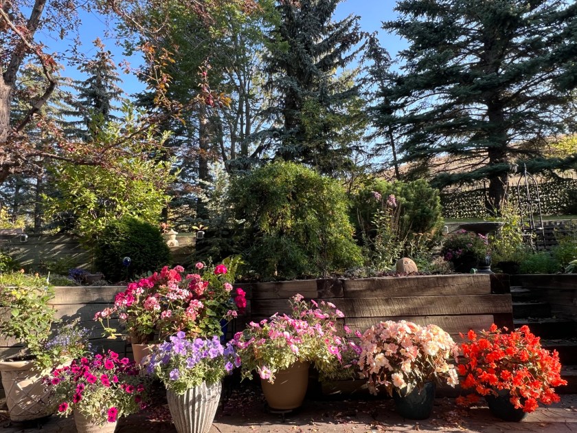 Garden in Airdrie in the summer, garden in Arizona in the winter… though the winter garden is a lot easier because I simply hire a crew to come in and blitz the place for half a day and I hire a company to come in and fertilize as needed! At both places we have a woodwork shop and a craft room to do paint pour, sewing and anything else I feel like doing!