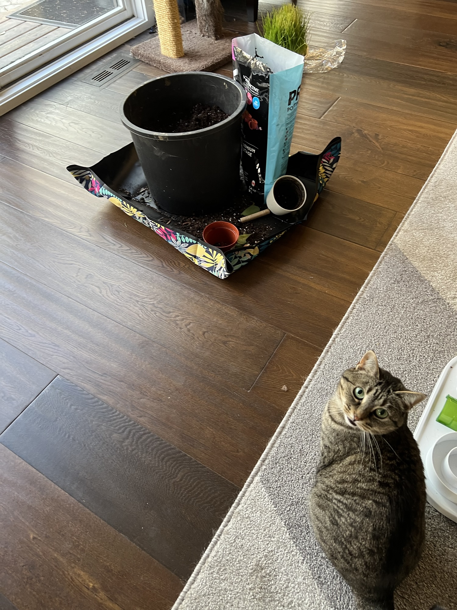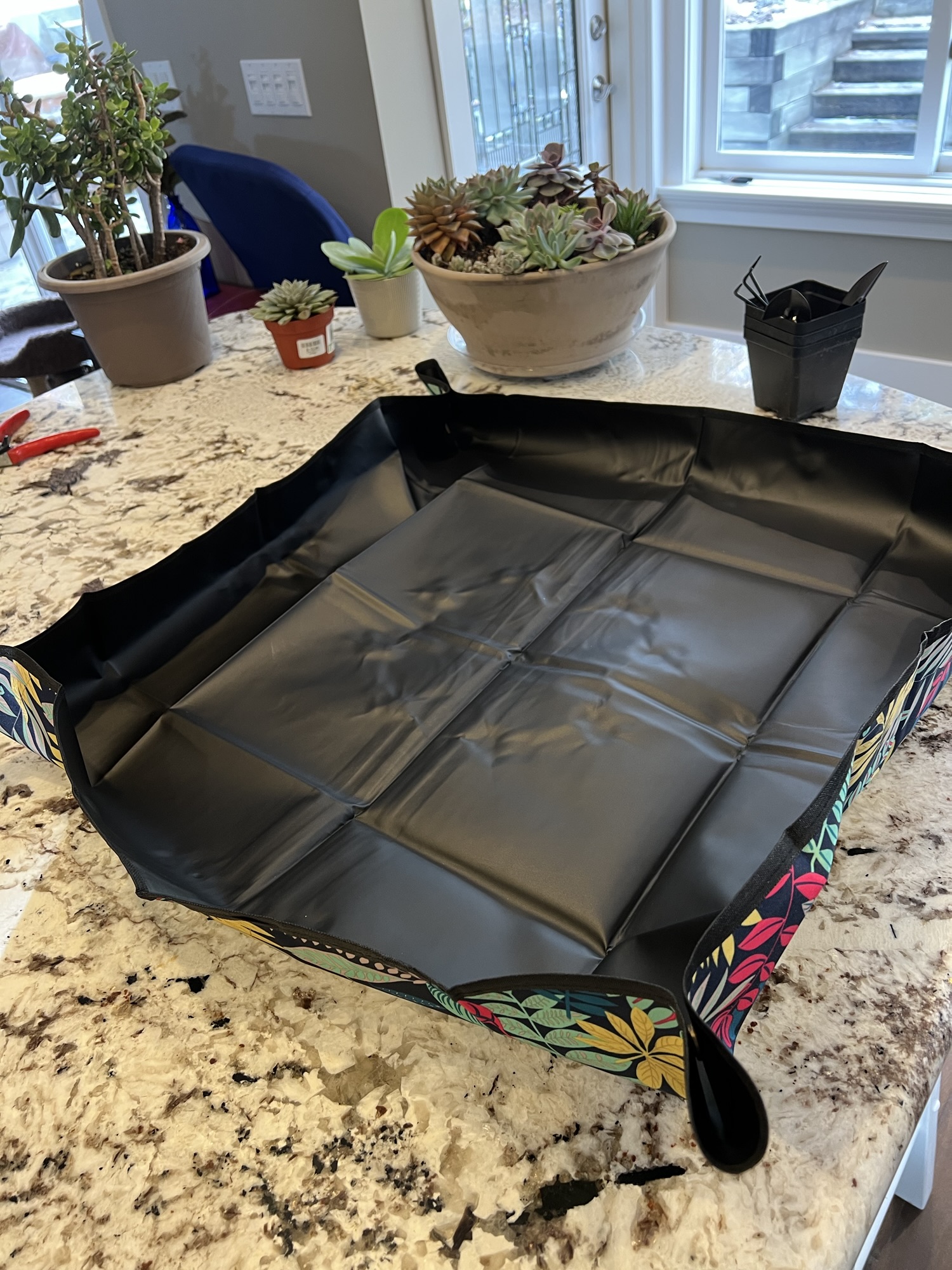 - A plant mat to catch soil and water, making indoor repotting a bit less messy, especially for large plants that are more easily tackled on the floor.