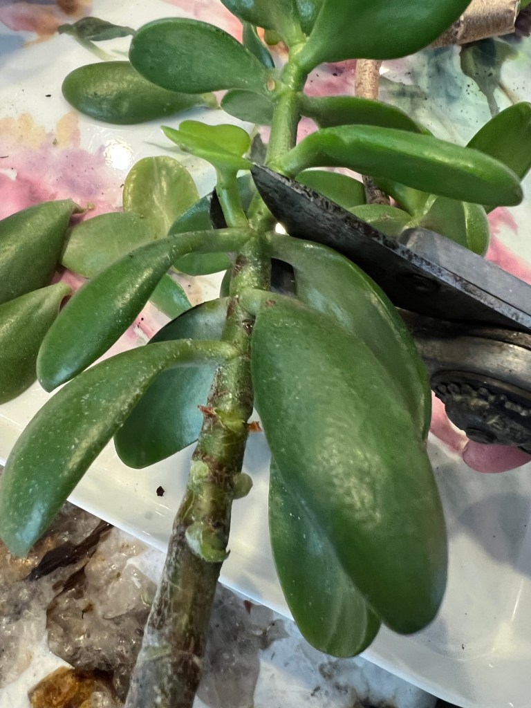 3. I had rooted a standard jade stem in my dwarf jade plant (it was handy…) and it was time to remove it.