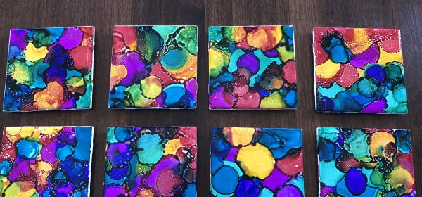 My girls and I made these a while back by dropping alcohol ink on ceramic tiles. I tried a couple different sealers to make the