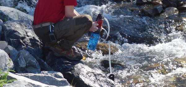 Today’s post highlights a couple other cool pieces of gear we enjoyed while hiking this summer. Above is a photo of my husband getting water