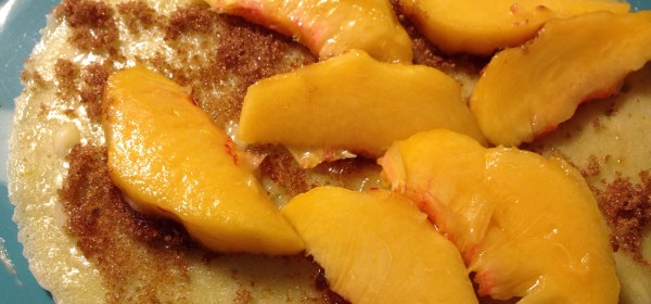 We have some lovely peaches and prune plums that I thought would make great dessert crepes. The first was a peach, brown sugar and butter