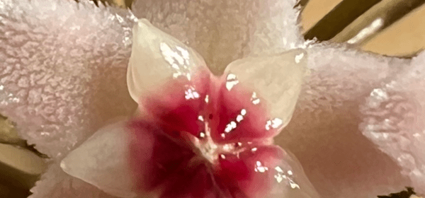 Hoyas produce such unusual flowers – waxy on parts, looking like cat tongues on parts and producing sweet nectar. It is always a treat when