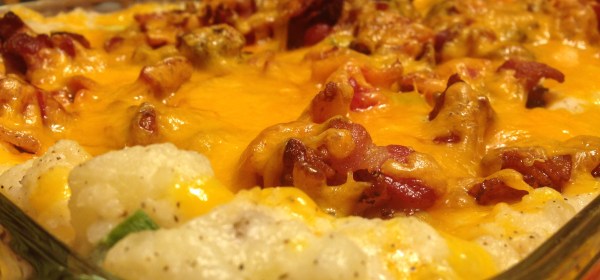 This casserole is made like twice-stuffed potatoes, except that you make a casserole with the enriched potato instead of stuffing it back in the potato