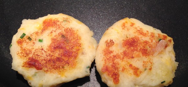 These are a good way to use up extra baked potatoes, mashed potatoes or boiled potatoes. The recipe below uses baked potatoes. 2 baked potatoes
